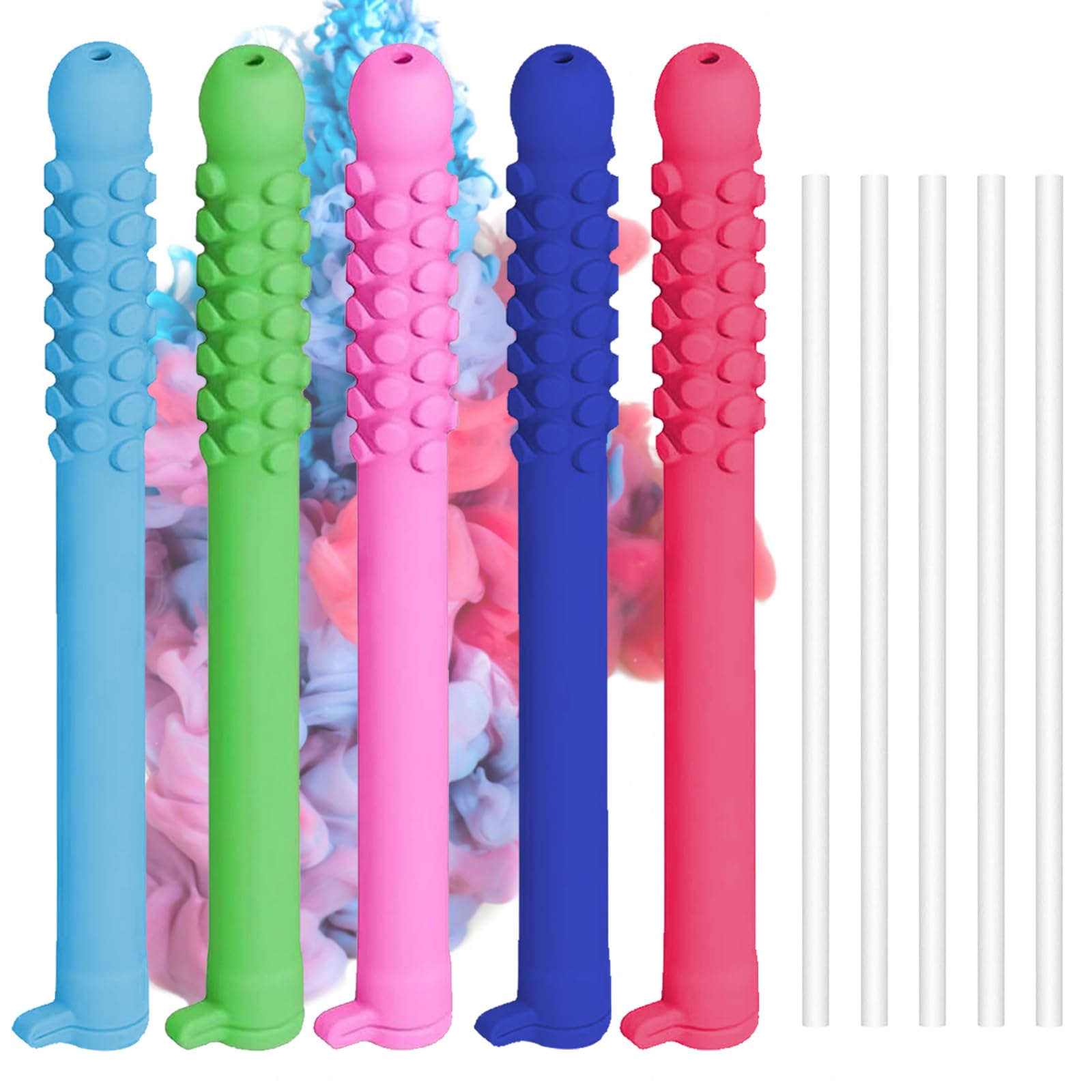 Widely Applicable: This chewable essential oil breath stick not only helps relieve stress and quit smoking, but its soothing aroma and chewing effect can also help correct oral habits such as biting nails or pens. Breathable chewers quit smoking can keep your mouth busy and your breath fresh all day long. Safe Material: Chewable breathers are made of food-grade silicone, which is non-addictive and does not contain harmful chemicals, so you can use them chew sticks for quitting smoking confidence. Easy to Carry: Our chewable breather is 3.94 inches long and 0.98 inches wide, and weighs only 9 grams. It is small and light enough to fit in a bag, pocket, or desk drawer. Whether you are working, driving, or socializing, you can use flavor sticks quit smoking to stay refreshed and focused. Smoking Cessation Aid: This 5-pack of chewable breather puff bar comes in 5 flavors(5 replacement cores are provided): orange, mint, strawberry, blueberry, and apple. Breathing sticks to quit smoking help smokers quit smoking by satisfying their oral cravings through a variety of flavors while keeping their mouths fresh. Release Stress: Our chewable breather quit smoking is formulated with pure essential oils for natural aromatherapy benefits that help release stress, calm the mind, and improve focus. Health chews chewable breather is ideal for studying, working, or practicing mindfulness!.