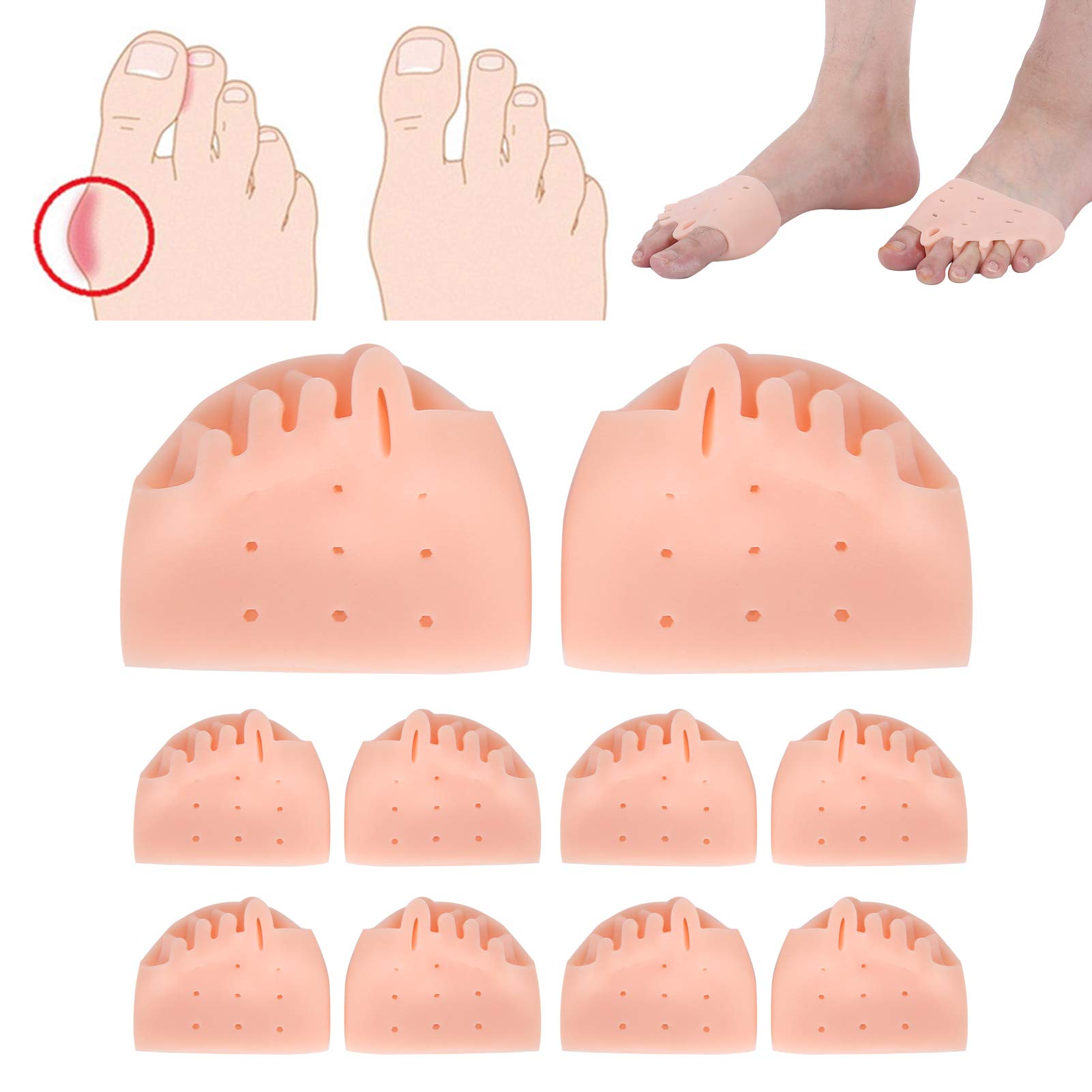 Feature: 1. SEBS material, good stability, aging resistance, heat resistance, high elasticity and compression without deformation. 2. The separate toe design effectively separates the toes, avoids squeezing, and is more comfortable to wear. 3. The use of high-elastic SEBS material, coupled with a humanized design, fits your feet more, soft and comfortable, and convenient for walking. 4. Vent hole design, skin-friendly, breathable, not stuffy feet, keep your feet dry and not sticky. 5. Conform with the physiological structure of feet, promote blood circulation Specification: Condition:100% Brand New Item Type: Bunion Corrector Quantity: one size, 5 pairs Material: SEBS Size: As shown in the picture Function: Prevent thumb valgus, bent toes, toe overlap, toe squeeze, protect forefoot Applicable object: adult female Package List: 5 x Pair of Bunion CorrectorToe Separator Hammer-Physical correction: Use physical means to form a good gap between the toes and use it for a long time. Let the toes form muscle memory, restore to the best position, no side effects, safer and more effective. Corrector Hallux Corrector-Five-finger separation: Our Hallux Valgus Foot Pad uses the five-finger separation method to separate the five thumbs one by one, ensuring that each toe is in the correct position, avoiding squeezing, and making it more comfortable to wear. Pads Toe Straightener-Pain relief: relieve your pain, treat your bunions, reduce friction between your toes, and enjoy the pleasure of walking again. Separate, straighten, stretch and align the toes. Valgus Splint Bunions-Breathable and comfortable: Although the SEBS material is not breathable, we have designed multiple ventilation holes to form a good air circulation in the sole. Bunion Corrector Hallux-High-quality materials: SEBS is made of safe skin-friendly materials, with good stability, aging resistance, heat resistance, high elasticity and compression without deformation. Has the same performance as silica gel.: B0B82YXBQT. Manufacturer: Betued. Package Dimensions: 5.51 x 3.94 x 1.57 inches; 9.31 Ounces.