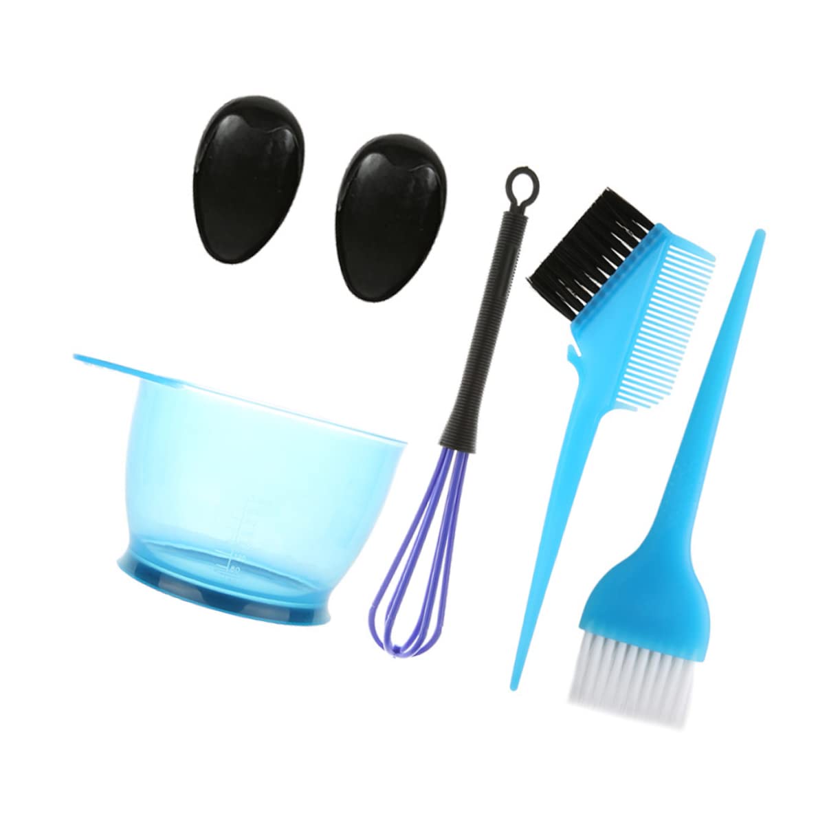 Package List: 1 x Whisk, 1 x Bowl, 1 x Pair of Earmuffs. Features: - Color: Blue hair coloring kit. - Size: 22 x 5 cm (brush), 5 cm (double-headed brush), 17.5 x 2.5 cm (whisk), 7.5 x 4.5 cm (earmuffs), 8 x 14.5 cm (bowl). - Material: Plastic and nylon hair coloring kit. - Measurements are located inside the bowl, and the rubber base prevents slipping when using the kit's tools. - The application brush has a mix of bristles of varying lengths to penetrate the hair and can also be used for detailed hair coloring. - Meets your basic needs. Easy to clean and sufficient for long-term use. - Made of plastic, washable and reusable. - Ideal for professional salon hairstyling and home use. Product Information: Hair Tools. Necessary accessories for hair coloring treatments, practical and easy to use. Hair Tools: Choose one to make your hair beautiful. Hair Kit: This kit meets your DIY hair needs for professional or personal use, and the tools are easy and convenient to use. Hair Kit Tools: This item is a hair kit, made of good material, for use