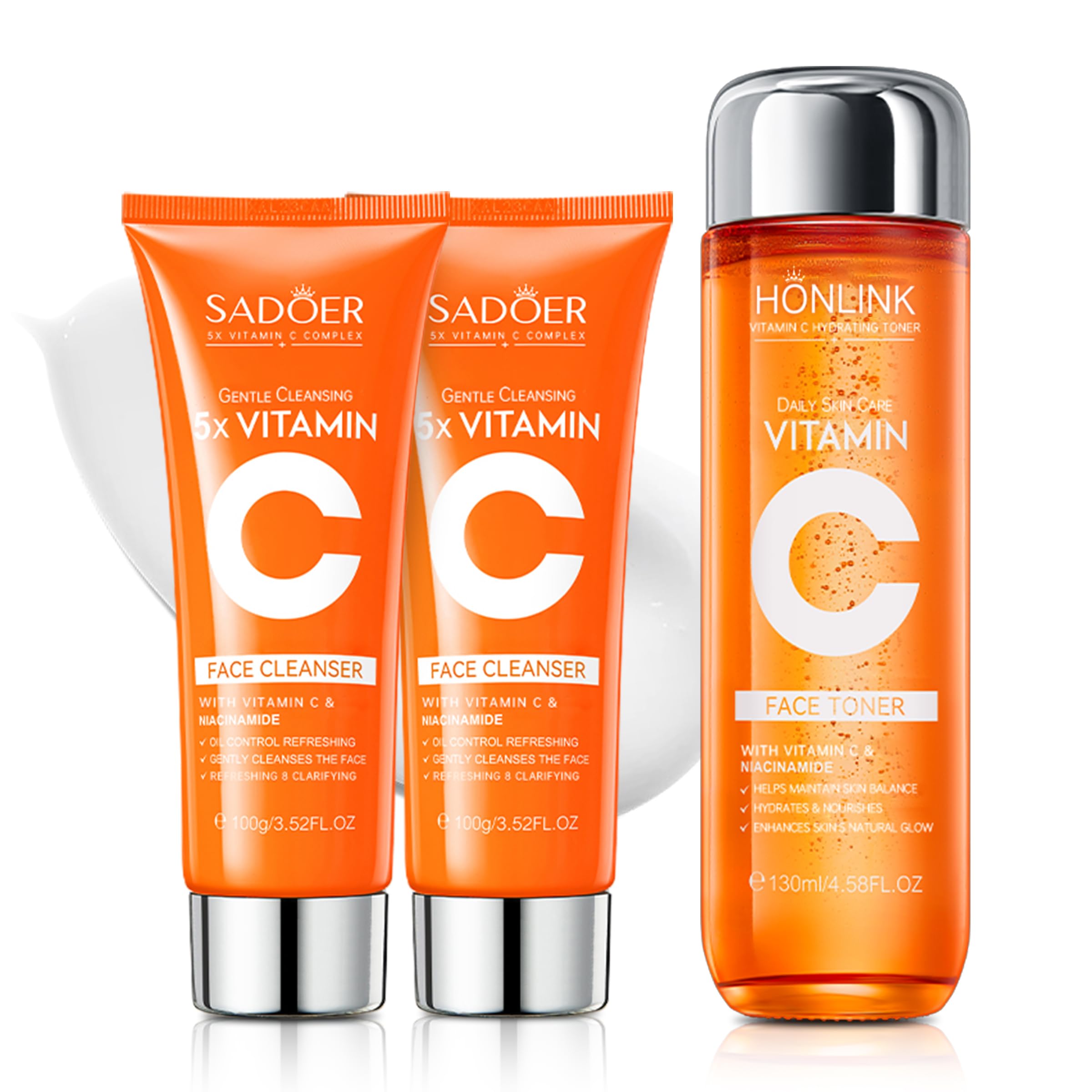 5X Vitamin C Face Cleanser 100g Niacinamide & Hyaluronic Acid Gentle Pore Refining Daily Wash for Oily &Dull Skin Clear Oil Balancing Popular Skincare Gift Women (2 Face Cleanser + 1 Toner)