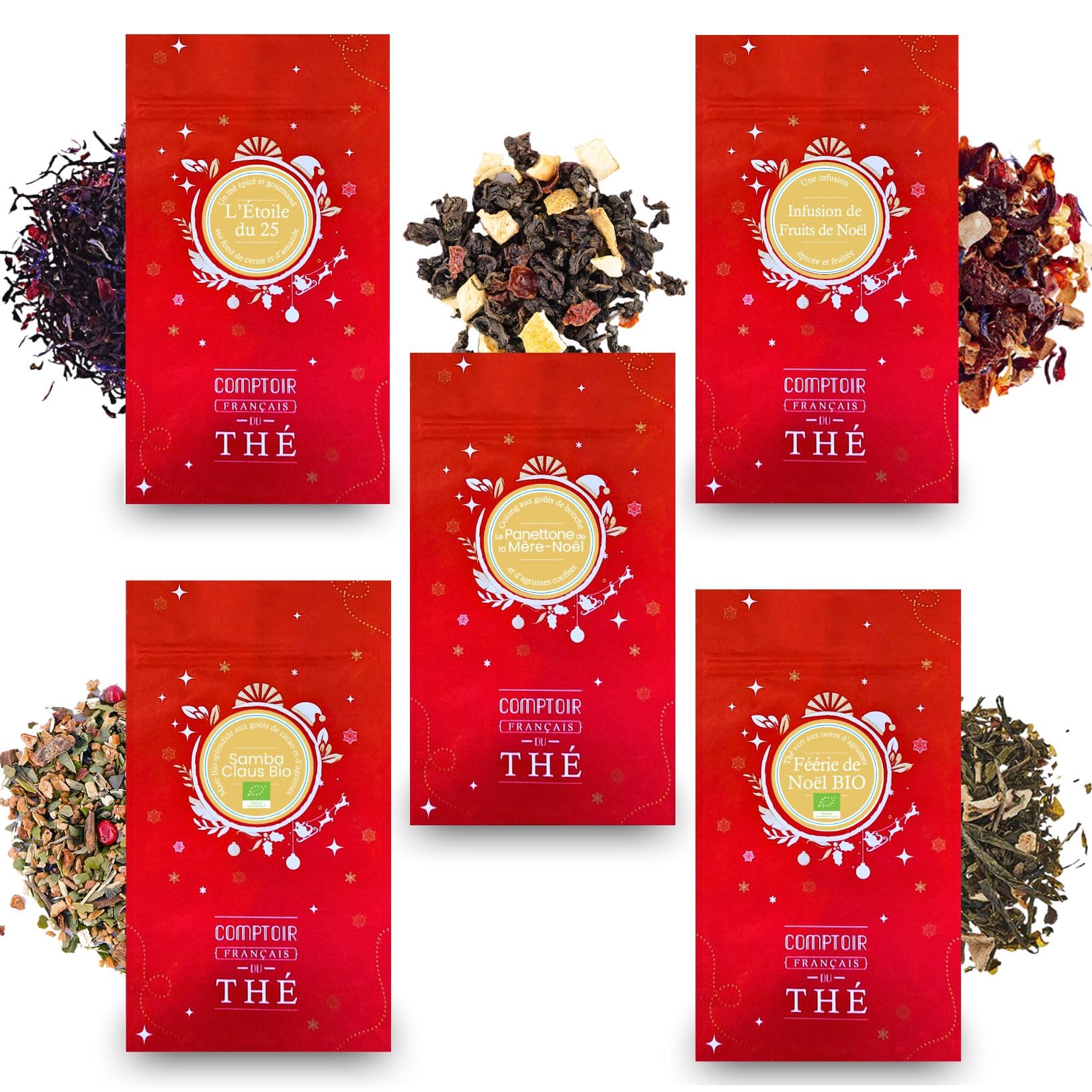 5x20g de Thés et Infusions de Noël assortis en vrac Pour varier les plaisirs tout au long de la journée COMPTOIR FRANÇAIS DU THÉ sans accessoire
