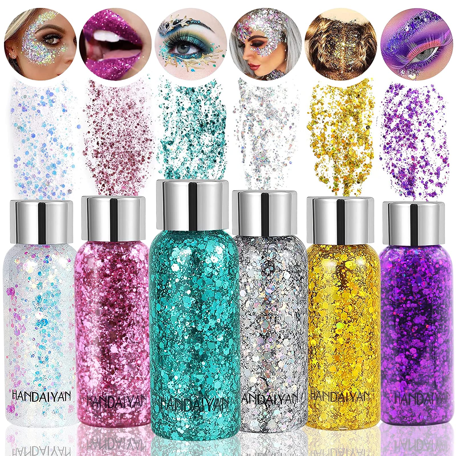Safe and of high quality-the body-glitter gel set is made of safe and non-toxic materials, non-toxic and child-friendly, has a continuous shine, suitable for all skin types, strong liability, durable and not peeled, durable waterproof and weld-resistant.Simple application-the body-glitter gel is sticky and does not require an adhesive.It can be applied directly to any part of the body you want to decorate.The glue takes about 15 minutes to dry completely.If it is not needed, it can simply be washed off with water.Even if it is applied to the hair, it can be washed off with soap.The ideal gift - we selected 6 colors as a combination that has a wide range of colors, perfectly to give away to the woman next to you and her wife on Halloween and Christmas.The perfect gift for every glitter -loving Rave Girl or Boy.Schille and striking-this glitter gel set can be used on eyes, eyebrows, lips, cheeks and face.Parties, weddings, shows, stages, bars, etc. It gives final celebrations, music festivals, red carpets, birthday parties, costume parties, carnival parties, festivals, anniversaries or stage shows a shimmering, sparkling color and makes them look stunning and stylish.Set with 6 glitter gel - 6 Bottle Body Glitter Gel: White pink green silver gold purple.It can be applied safely on the skin, and this thick glitter set contains small stars, moons and hexagon.The shine and color of the laser glitter vary depending on the angles and incidence of light and are therefore perfect for giving away and self -decoration.Sicher und von hoher Qualität - Das Körper-Glitter-Gel-Set ist aus sicheren und ungiftigen Materialien hergestellt, ungiftig und kinderfreundlich, hat einen kontinuierlichen Glanz, geeignet für alle Hauttypen, starke Haftung, langlebig und nicht schälen, langlebig wasserdicht und schweißbeständig. Einfache Anwendung - Das Körper-Glitter-Gel ist klebrig und erfordert keinen Klebstoff. Es kann direkt auf jede Körperstelle aufgetragen werden, die Sie verzieren möchten. Der Kleber braucht etwa 15 Minuten, um vollständig zu trocknen. Wenn er nicht benötigt wird, kann er einfach mit Wasser abgewaschen werden. Selbst wenn er auf die Haare aufgetragen wird, kann er mit Seife abgewaschen werden. Das ideale Geschenk - Wir haben 6 Farben als Kombination ausgewählt, die eine breite Palette von Farben hat, perfekt zum Verschenken an die Frau neben Ihnen und Ihre Frau an Halloween und Weihnachten. Das perfekte Geschenk für jedes glitzerbegeisterte Rave Girl oder Boy. Schillernd und auffallend - Dieses Glitter-Gel-Set kann auf Augen, Augenbrauen, Lippen, Wangen und im Gesicht verwendet werden. Besonders geeignet für Partys, Hochzeiten, Shows, Bühnen, Bars, etc. Es verleiht Abschlussfeiern, Musikfestivals, roten Teppichen, Geburtstagsfeiern, Kostümpartys, Faschingspartys, Festivals, Jubiläen oder Bühnenshows eine schimmernde, funkelnde Farbe und lässt Sie umwerfend und stilvoll aussehen. Set mit 6 Glitter Gel Flaschen - 6 Bottle Body Glitter Gel: White Rosa Grün Silver Gold Lila. Es ist sicher auf der Haut aufzutragen, und dieses dicke Glitzerset enthält kleine Sterne, Monde und Sechsecke. Der Glanz und die Farbe des Laserglitters variieren je nach Winkel und Lichteinfall und eignen sich daher perfekt zum Verschenken und zur Selbstdekoration.6 Bottle Glitzer Gesicht - Glitzer Basteln - Body Glitter Gel - Glitzer Schminke Make Up mit 6 Löffeln für Haare Nägel Kosmetik Festival Party Langanhaltend Funkelnd - White Rosa Grün Silver Gold Lila