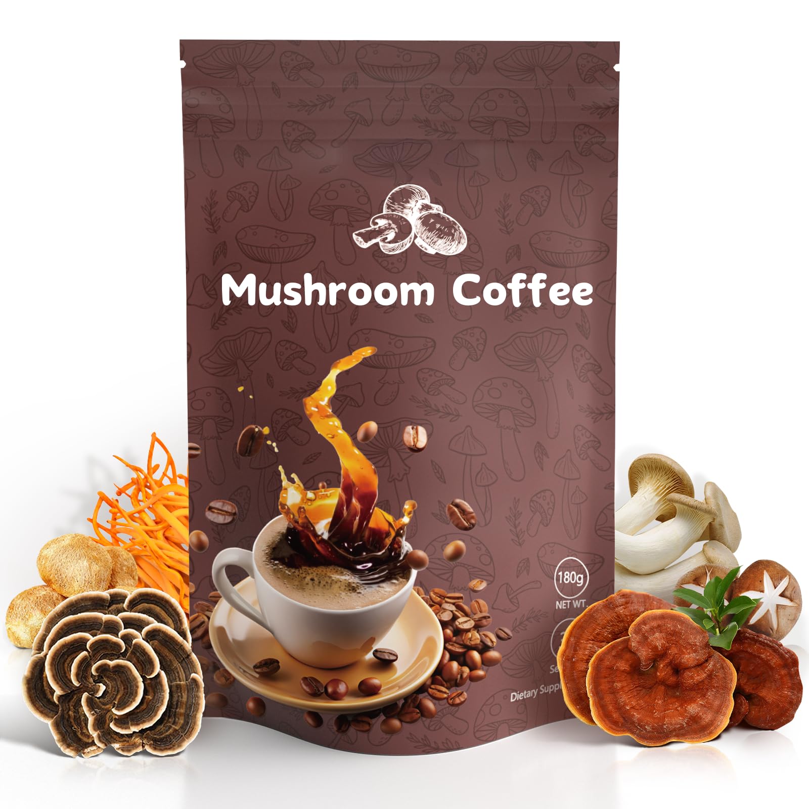 Mushroom Coffee AdaptogenicMushroom Blend with Lions Mane,Reishi,Turkey Tail Instant Mushrooms Coffee for Boost Energy, Focus 30 servings