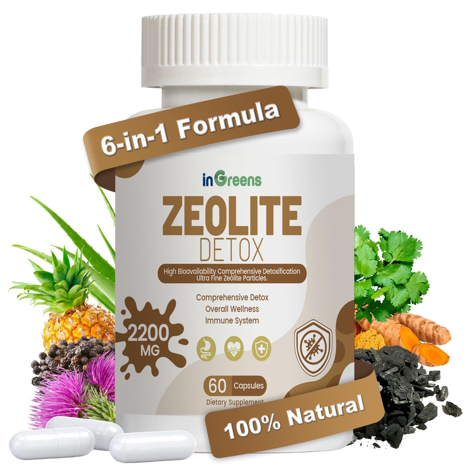 6-in-1 Zeolite Detox Capsules 2200mg Activated Charcoal Bentonite Clay Immune System Overall Wellness for Women & Men 60 Capsules 60 Count (Pack of 1)