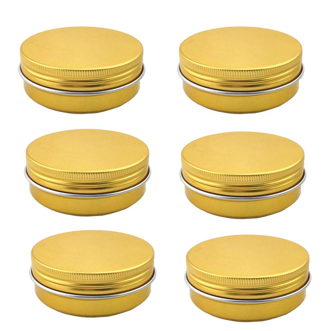 Color: Gold. Material: Aluminum. Capacity: 40ml. Dimensions: 56 x 22mm (Diameter x Height). Net Weight: Approx. 10g each. Package Content: 6pcs.Ideal container for makeup products, balms, candles and other small items. Protects your products from overexposure to harmful UV rays, light, body heat and high temperatures when stored in your pocket or elsewhere. Small and lightweight, perfect for travel, business trip. No sharp edges on the screw cap to avoid scratching your hand. Screw cap for good sealing, ensures your products do not leak or spill, keeps your product fresh and clean. Made of food-grade and premium aluminum, it is chemical resistant, durable and safe for your body. The surface adopts high-precision surface oil technology, high quality, waterproof, anti-corrosion and anti-static. Couleur : doré. Matériau : aluminium. Capacité : 40 ml. Dimensions : 56 x 22 mm (diamètre x hauteur). Poids net : environ 10 g chacun. Contenu de l'emballage : 6 pièces.Récipient idéal pour les produits de maquillage, les baumes, les bougies et autres petits objets. Protège vos produits contre la surexposition aux rayons UV nocifs, à la lumière, à la chaleur corporelle et aux températures élevées lorsqu'ils sont rangés dans votre poche ou ailleurs. Petit et léger, parfait pour les voyages, les voyages d'affaires. Pas de bords tranchants sur le bouchon à vis pour éviter de rayer votre main. Bouchon à vis pour une bonne étanchéité, garantit que vos produits ne fuient pas ou ne se renversent pas, garde votre produit frais et propre. Fabriqué en aluminium de qualité alimentaire et de qualité supérieure, il est résistant aux produits chimiques, durable et sans danger pour votre corps. La surface adopte une technologie d'huile de surface de haute précision, de haute qualité, imperméable, anti-corrosion et antistatique.