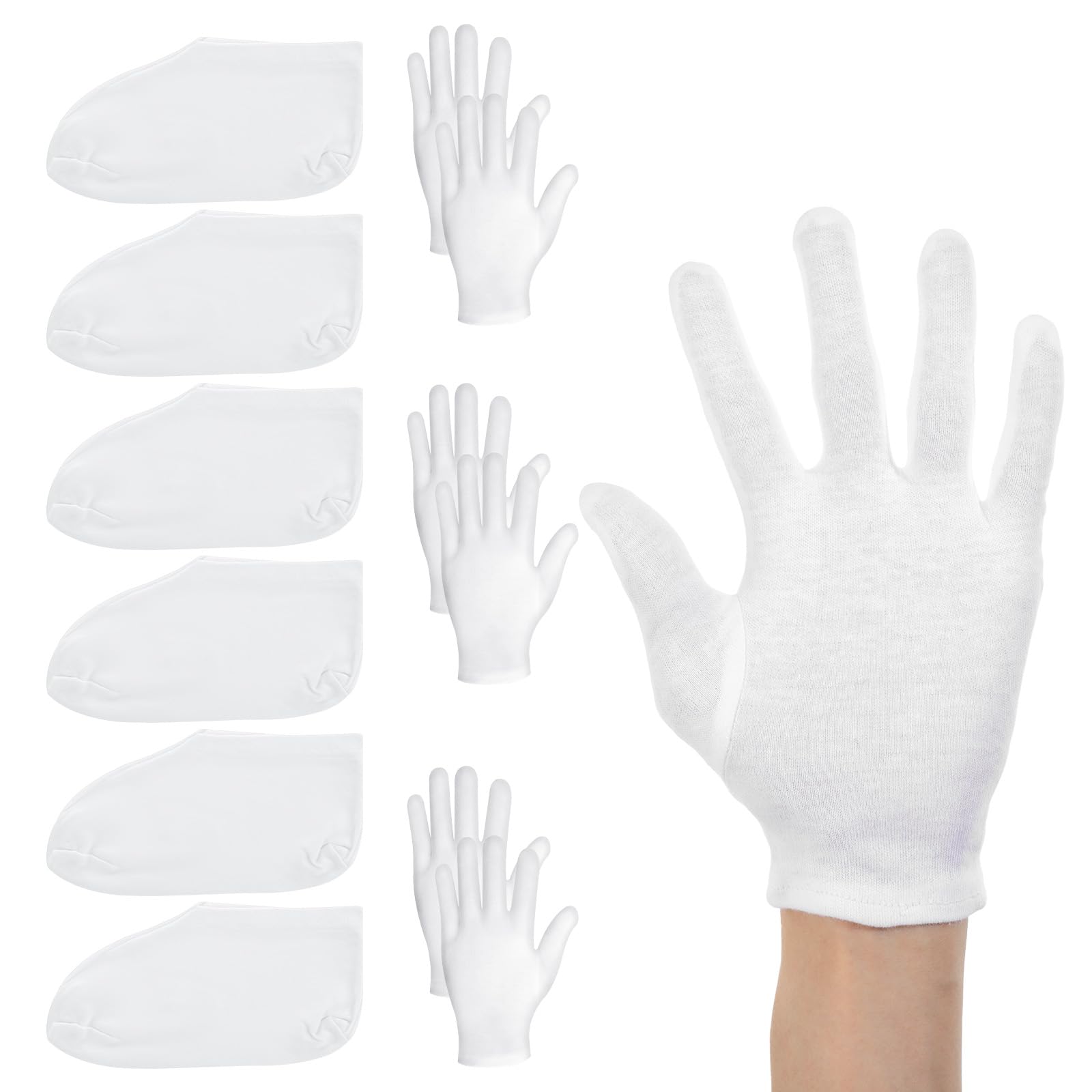 Versatile use: Whether you're looking to enhance your skincare routine or simply seeking comfort, our cotton gloves and moisturising socks set is perfect for all your hydration needs. Convenient packaging: The set comes in a bag, making it easy to store and transport. Ideal for personal use or as a thoughtful gift for friends and family seeking skin rejuvenation. Moisturising gloves: Each set includes 3 pairs of thickened gloves, measuring 23x9cm, perfect for providing a soothing experience for dry hands. The cotton blend material ensures comfort and durability. Moisturising socks: These beauty socks are ideal for overnight use, helping to hydrate and rejuvenate tired feet. Made from a comfortable cotton blend, they ensure a snug fit with a length of 18.5cm and a width of 10cm. Cotton gloves for dry hands: Our gloves are crafted from a soft cotton blend, designed to provide relief for dry, cracked skin. Perfect for locking in moisture and enhancing the effectiveness of your favorite creams.