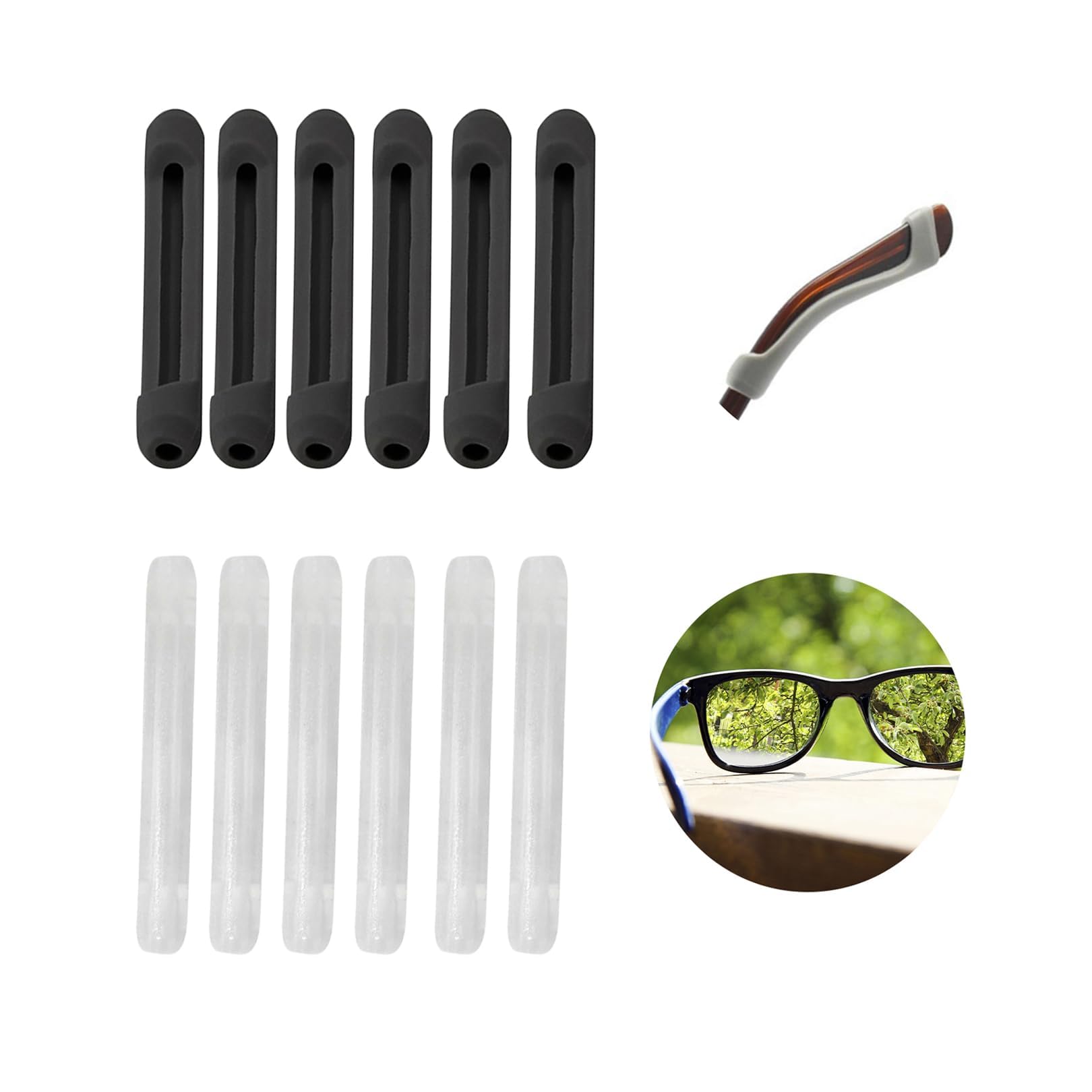Our 6 pairs of glasses brackets offer an innovative solution for everyone who is annoyed by sliding glasses.This anti-slip glasses to repair is made of high quality silicone and has been specially developed to fix glasses brackets safely and comfortably.The silicone glasses end caps easily adapt to the glasses legs and ensure a firm hold, without slipping. The glasses brick coatings are particularly suitable for short -sighted glasses and sunglasses.Available in black and transparent, fit perfectly to a variety of glasses models and fit seamlessly into your personal style repertoire. The anti-slip silicone glasses legs not only offer practical use, but also a pleasant comfort.The soft coating gently nestles on its ears and prevents unpleasant pressing.So you can carry your glasses all day without any disturbing interruptions. The application is very simple.Simply push the silicone glasses end caps over the glasses brackets, and the anti-slip glasses are already completed.These small covers make a big difference by keeping your glasses safely on the spot.stylish glasses accessories for every occasion: With a set of transparent and black glasses brackets, you not only get a practical repair solution, but also a stylish glasses accessories.Do your glasses not only functional, but also fashionable with this simple but effective accessory.Simple application without tools: The use of the glasses brackets is extremely easy and does not require any additional tool.Simply push the silicone glasses end caps over the glasses brackets, and the anti-slip glasses are already completed.Pleasant comfort: the silicone glasses end caps not only offer a safe hold, but also a pleasant comfort.The soft coating nestles gently on its ears, prevents pressure points and ensures that you can wear your glasses all day without inconvenience.Versatile for short-sighted glasses and sunglasses: This anti-slip glasses bracket repair is well suited for short-sighted glasses and sunglasses.The transparent and black color option enables you to perfectly adapt the covers to different glasses models.Effective solution for slipping glasses brackets: Our glasses brackets offer an effective solution for the annoying problem of sliding glasses.Made with high -quality silicone, ensure a firm hold and prevent unwanted slipping. Unsere 6 Paar Brillenbügel Überzüge bieten eine innovative Lösung für alle, die von rutschenden Brillenbügeln genervt sind. Diese Anti-Rutsch Brillenbügel Reparatur besteht aus hochwertigem Silikon und ist speziell entwickelt worden, um Brillenbügel sicher und bequem zu fixieren. Die Silikon Brillen Endkappen passen sich mühelos an die Brillenbeine an und sorgen für einen festen Halt, ganz ohne Verrutschen. Die Brillenbügel Überzüge sind besonders für kurzsichtige Brillen und Sonnenbrillenbeine geeignet. Erhältlich in Schwarz und Transparent, passen sie perfekt zu einer Vielzahl von Brillenmodellen und fügen sich nahtlos in Ihr persönliches Stilrepertoire ein. Die Anti-Rutsch Silikon Brillenbeine bieten nicht nur einen praktischen Nutzen, sondern auch einen angenehmen Tragekomfort. Die weiche Beschichtung schmiegt sich sanft an Ihre Ohren an und verhindert unangenehmes Drücken. So können Sie Ihre Brille den ganzen Tag über ohne störende Unterbrechungen tragen. Die Anwendung ist denkbar einfach. Schieben Sie einfach die Silikon Brillen Endkappen über die Brillenbügel, und schon ist die Anti-Rutsch Brillenbügel Reparatur abgeschlossen. Diese kleinen Überzüge machen einen großen Unterschied, indem sie Ihre Brille sicher an Ort und Stelle halten.Stilvolles Brillenzubehör für Jeden Anlass: Mit einem Set von transparenten und schwarzen Brillenbügel Überzügen erhalten Sie nicht nur eine praktische Reparaturlösung, sondern auch ein stilvolles Brillenzubehör. Machen Sie Ihre Brille nicht nur funktional, sondern auch modisch mit diesem einfachen, aber wirkungsvollen Accessoire. Einfache Anwendung ohne Werkzeug: Die Anwendung der Brillenbügel Überzüge ist äußerst einfach und erfordert kein zusätzliches Werkzeug. Schieben Sie die Silikon Brillen Endkappen einfach über die Brillenbügel, und schon ist die Anti-Rutsch Brillenbügel Reparatur abgeschlossen. Angenehmer Tragekomfort: Die Silikon Brillen Endkappen bieten nicht nur einen sicheren Halt, sondern auch einen angenehmen Tragekomfort. Die weiche Beschichtung schmiegt sich sanft an Ihre Ohren an, verhindert Druckstellen und sorgt dafür, dass Sie Ihre Brille den ganzen Tag über ohne Unannehmlichkeiten tragen können. Vielseitig Anwendbar für Kurzsichtige Brillen und Sonnenbrillen: Diese Anti-Rutsch Brillenbügel Reparatur eignet sich gut für kurzsichtige Brillen und Sonnenbrillenbeine. Die transparente und schwarze Farboption ermöglicht es Ihnen, die Überzüge perfekt an verschiedene Brillenmodelle anzupassen. Effektive Lösung für Rutschende Brillenbügel: Unsere Brillenbügel Überzüge bieten eine effektive Lösung für das lästige Problem von rutschenden Brillenbügeln. Mit hochwertigem Silikon gefertigt, sorgen sie für einen festen Halt und verhindern ungewolltes Verrutschen.6 Paar Brillenbügel überzug, Anti Rutsch Brillenbügel Reparatur, Silikon Brillen Endkappen, Antirutsch Silikon Brillenbeine, Für kurzsichtige Brillen, Sonnenbrillenbeine(Schwarz, Transparent)