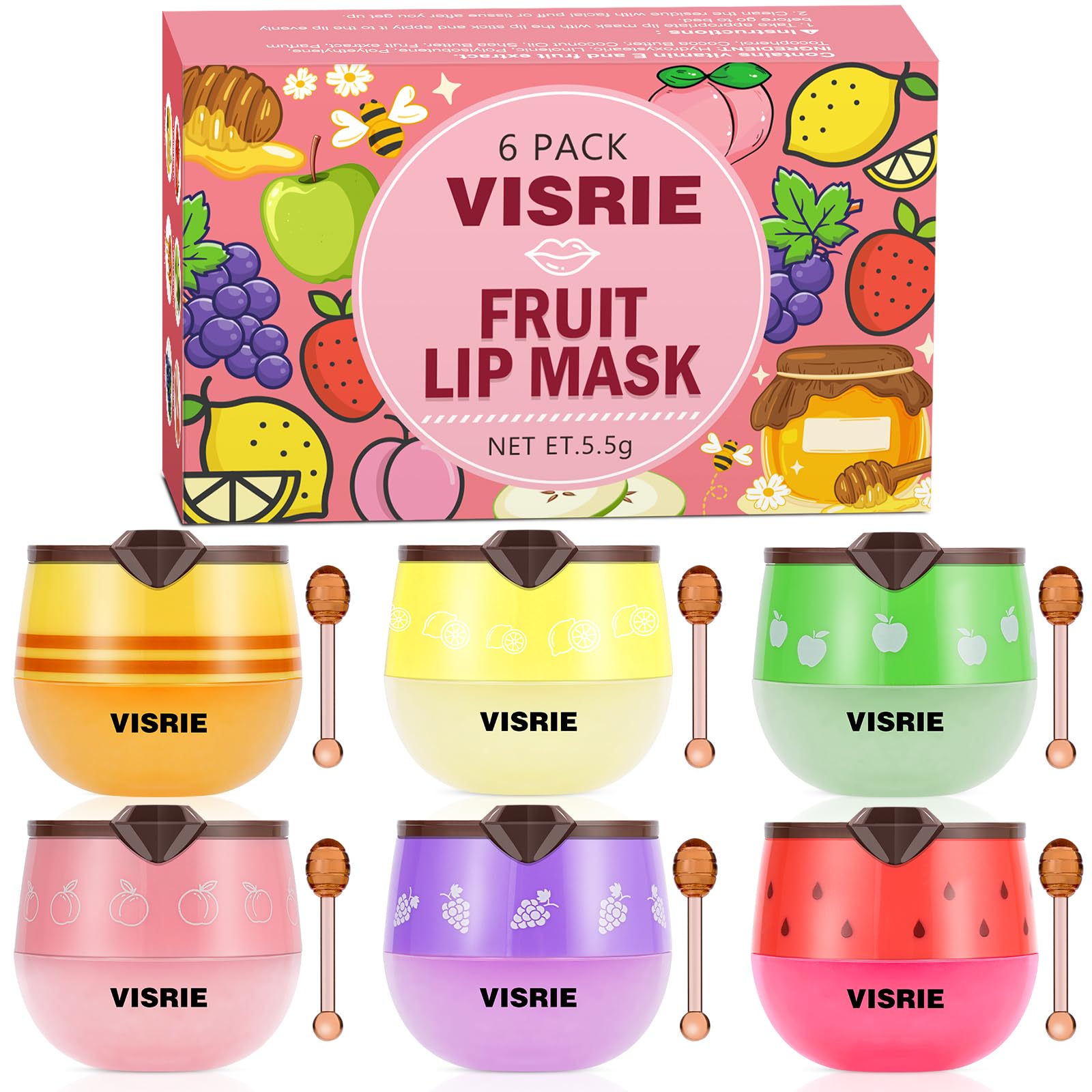 Perfect Gift for Any Occasion Cute honeybalm presented in an elegant gift box, our honey pot lip balm is an excellent gift for women. A thoughtful and practical gift that says you care, perfect christmas stocking stuffers gifts, mothers day gifts, teacher appreciation gifts, birthday gifts and Valentine's Day gift. Adorable Design Each honey balm lip balm comes in the cuties little jar with a tiny honey cone lip gloss stick, it is not only a practical lip care product but also a charming decoration on your dressing table.Perfect gift for friends, family or yourself!. Day Night Formula Sleeping lip mask have a dual care effect. By day, apply a thin layer as a nourishing lip balm under lipstick for a smooth base. By night, apply a thicker coat as an intensive overnight lip mask. Wake up to incredibly soft, renewed, and supple lips. Flavored Lip Sleeping Mask Set This lip sleeping mask set consists of a total of 6 bottles in 6 flavors-Strawberry, Green Apple, Peach, Lemon, Honey, and Grape. The refreshing flavor brings sweet and smooth wonderful enjoyment to the lips. Hydrating Bee Lip Balm This sleeping lip mask is rich in moisturizing ingredients, which can quickly penetrate into the lip skin and provide sufficient nutrition and moisture for the lip skin, lip mask is very effective for dry and cracked lips, it can also be used to improve and lighten lip color, make lips smoother and softer.