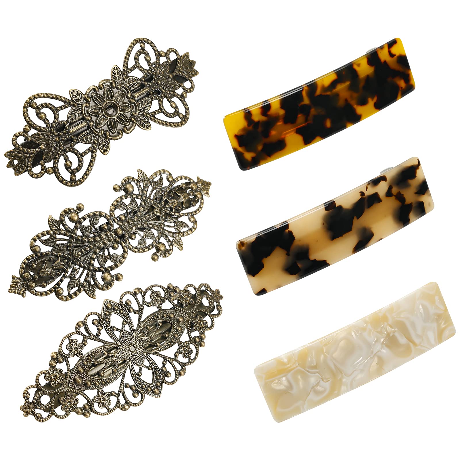 6 Pcs French Classic Hair Clips Retro Hair Clips Set Bronze Metal Hair Clip for Women Girls