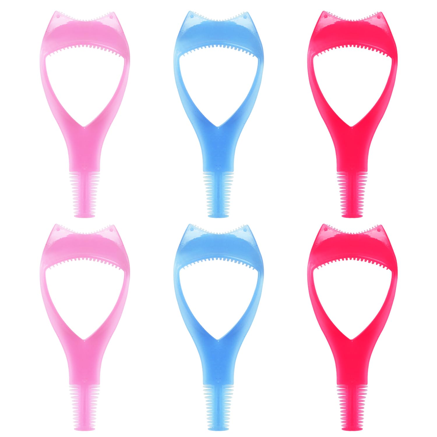 5. Long-lasting styling: After use, the eyelashes can maintain their curled shape and last for a long time, keeping your eyes charming and showing your personal charm. 4. Portable and convenient: The eyelash curler auxiliary tool is small and lightweight, and can be easily carried in a cosmetic bag or pocket. It is an easy-to-carry makeup essential and can be used at any time. 3. Simple and easy to use: This eyelash curling auxiliary tool can help you position your eyelashes perfectly. You only need to gently curl your eyelashes to achieve the desired curling effect. 2. High-quality material: This eyelash curling aid is made of high-quality plastic material, which is durable, corrosion-resistant, and easy to clean, ensuring many years of use. 1. Package contents: You will receive 3 colors of eyelash curlers, including 2 pink, 2 rose red and 2 blue, a total of 6 eyelash curling auxiliary tools.