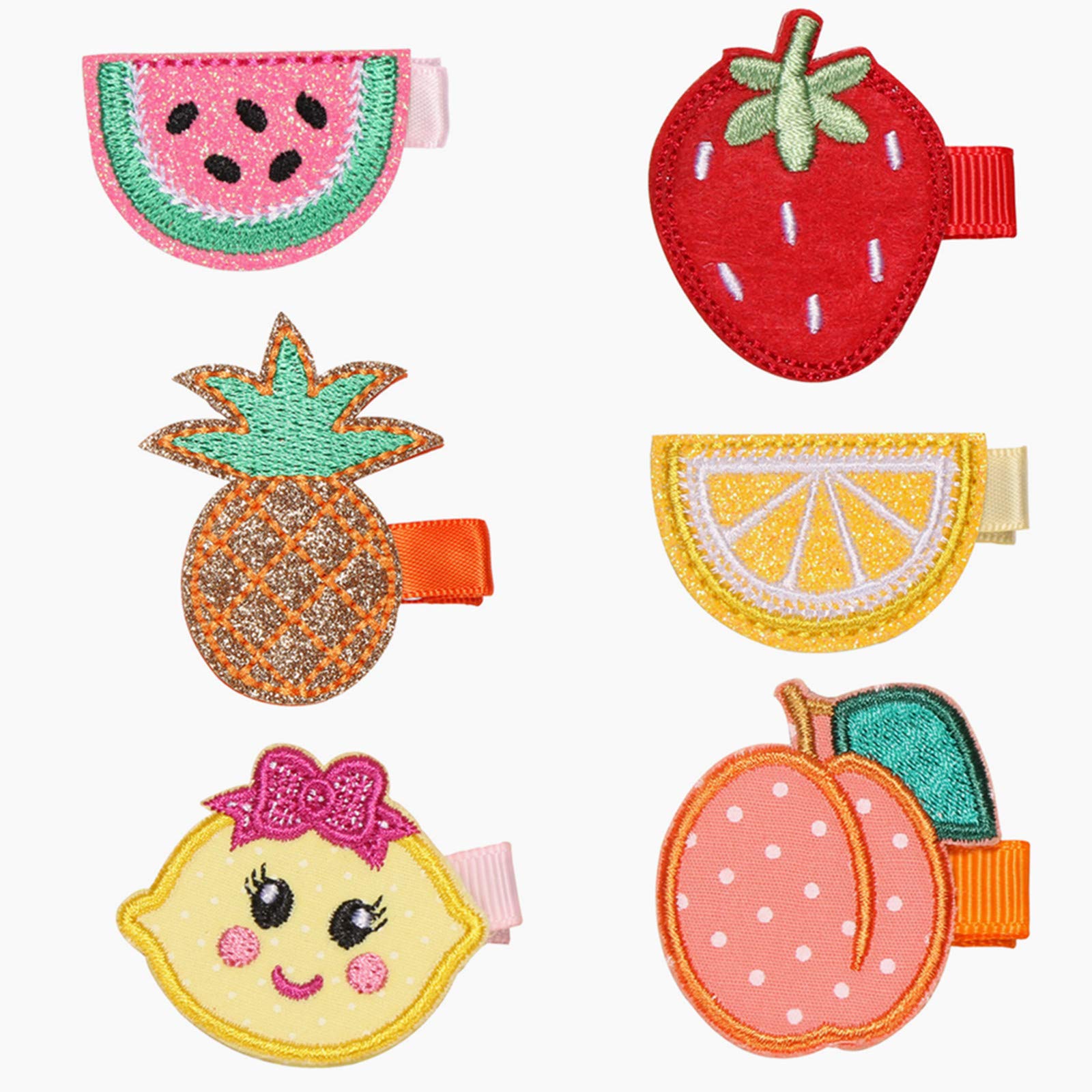 6 Pieces Cute Hair Clips Embroidery Fruit Hair Clips Children Hairpin Cute Hair Bows for Girls Kids Women Accessories