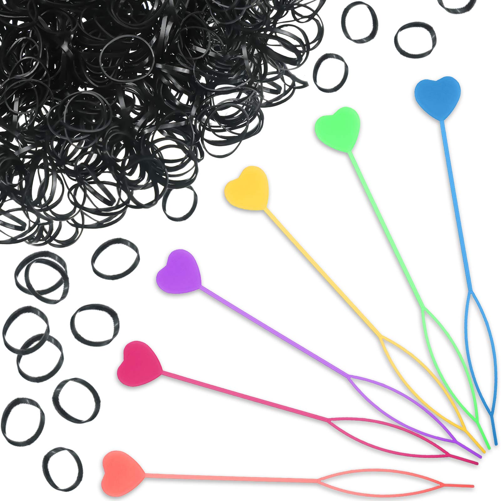 Feature: Various hairstyle: These quick beader tools can cooperate with classic black rubber bands to braid various hairstyles, such as princess hair styling, small dreadlocks, hair design, hair braiding, ponytails, wedding hairstyle, or DIY more charming hairstyles, good for daily life, wedding, party and so on. Multiple applications: These ponytail maker styling tools allow you to finish your handcraft project easily and quickly, shorten the application time and avoid causing a mess, suitable for diverse ages, they can be applied to make jewelry necklaces, hand chains, wigs, hair extensions, etc. or as gifts to friends Specification: Material: plastic resin, rubber Size of quick beads: approx. 7.8 inches in length Size of black rubber: 0.03 cm in thickness and 1 cm in diameter Color: as shown in pictures Package include: 6 x Quick beader (red, pink, purple, blue, yellow, and green) 1000 x Black rubber bands Note: Pointed parts include, please use it carefully and keep away from little kids. The colors may exist slight difference due to different screens.Wide range of usages: these ponytail maker styling tools allow you to finish your handcraft project easily and quickly, shorten the application time and avoid causing a mess, suitable for diverse ages, they can be applied to make jewelry necklaces, hand chains, wigs, hair extensions, etc. or as gifts to friends. Hair styling: these quick beader tools can cooperate with classic black rubber bands to braid various hairstyles, such as princess hair styling, small dreadlocks, hair design, hair braiding, ponytails, wedding hairstyle, or DIY more charming hairstyle, good for daily life, wedding, party and so on. Safe to use: put the bead through the tool, then pull the thread from the hole and pull the bead onto the thread, and you can use it to braid your husband's beard or your daughter ponytail. Reliable and stable: soft automatic hair beaders are made of flexible plastic resin, non-toxic and odorless, the surface is smooth, foldable, easily bends without having it cut or broken; Soft hair bands are made from durable and flexible rubber. What you get: comes with 6 pieces of quick beader in heart shape design, available in 6 colors, that are red, pink, purple, blue, yellow, and green, each one measures approx. 7.8 inches in length, along with 1000 pieces of black rubber hair bands, useful to meet your different daily use.