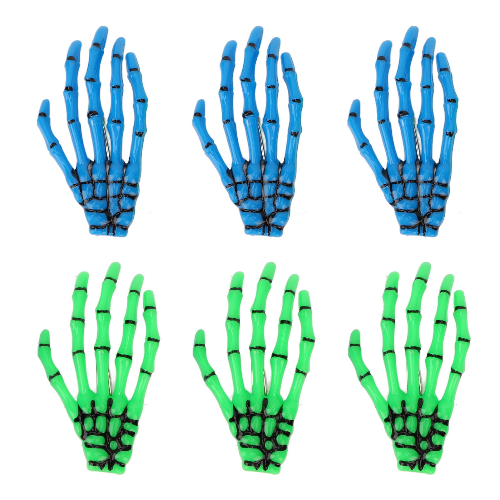 PLASTIC AND ALLOY This hair clip has a glazed and refined appearance. The alloy material makes the hair pin sturdy and durable without rusting easily. Portable This hair clip is lightweight, small and easy to carry. You can carry it around in your bag and use it at work or dinner to cut it comfortably. Wide Range of Uses This unique hair clip can not only be used to decorate hair for a variety of different looks, but also as a special accessory for cosplay and costume parties. Green and Blue Color This hair clip is designed in 3 green and 3 blue colors. Not a great decoration for Halloween parties, but creates a more festive and spooky atmosphere. Personalized Hand Bone Shape This Halloween hair clip mimics the shape of a human finger to hold hair more securely. Look more unique and cooler.