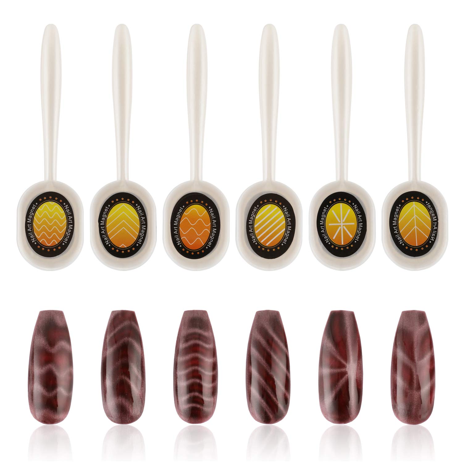 MWoot 6 styles cat eyes 3D magnetic key for magical gel nails Product features: Not only for nails, but also for cell phone covers, clothing, home decoration, nail studios and body art. Easy to handle and use, an ideal tool or gift for anyone who loves nail design. Included: 6 x magical rods for magnetic plate. Application: Step 1: First apply basic oil and have it hardened. Step 2: Apply a thick layer of cat eye gel nail polish, work quickly, the nail polish dries quickly and you have to put the magnetic tab over the damp nail polish as quickly as possible. Step 3: Place your finger under the magnetic plate for 20 seconds or use the pen to draw the desired pattern. Step 4: Apply the top coat and have it hardened.multiple effects: With the precision tip of the magnet you can easily attract the particles in the magnetic gel polish.Fast and efficient tool: achieve the CAT eye effect quickly and quickly.However, this tool must be used with Cat Eye Polish.The strong cat eye magnet pencil: light, comfortable to carry and keep.Durable material: high -quality resin + magnet, durable.6 pieces of difference nail magnet tool set: You can create many different effects and cool styles. MWOOT 6 Stile Katzenaugen 3D-Magnetschlüssel für magische Gelnägel Produktmerkmale: Nicht nur für Nägel, sondern auch für Handyhüllen, Kleidung, Heimdekoration, Nagelstudios und Körperkunst. Einfach zu handhaben und zu verwenden, ein ideales Werkzeug oder Geschenk für jeden, der Nageldesign liebt. Im Lieferumfang enthalten: 6 x magische Stäbe für Magnetplatte. Anwendung: Schritt 1: Zuerst Basisöl auftragen und aushärten lassen. Schritt 2: Tragen Sie eine dicke Schicht Katzenaugen-Gel-Nagellack auf, arbeiten Sie schnell, der Nagellack trocknet schnell und Sie müssen den Magnetstab so schnell wie möglich über den feuchten Nagellack legen. Schritt 3: Legen Sie den Finger für 20 Sekunden unter die Magnetplatte oder verwenden Sie den Stift, um das gewünschte Muster zu zeichnen. Schritt 4: Tragen Sie den Überlack auf und lassen Sie ihn aushärten.Mehrfacher Effekt: Mit der Präzisionsspitze des Magneten können Sie die Partikel in der magnetischen Gelpolitur leicht anziehen. Schnelles und effizientes Tool: Einfach und schnell den Cat Eye-Effekt erzielen. Dieses Werkzeug muss jedoch mit Cat Eye Polish verwendet werden. Der starke Katzenaugen-Magnetstift: Leicht, bequem zu tragen und aufzubewahren. Langlebiges Material: Hochwertiges Harz + Magnet, langlebig. 6 Stück Differents Nagel Magnet Tool Set: Sie können viele verschiedene Effekte und coole Stile erstellen.6 Stück Nail Magnet Tool, Mwoot 3D Magnet Stick für Nagellack Gel Magische Nagel Werkzeug, Magnetische Katze Eye Pen Zeichnung Vertikalen Stick, Nagelkunst-Magnet-Stift-Set