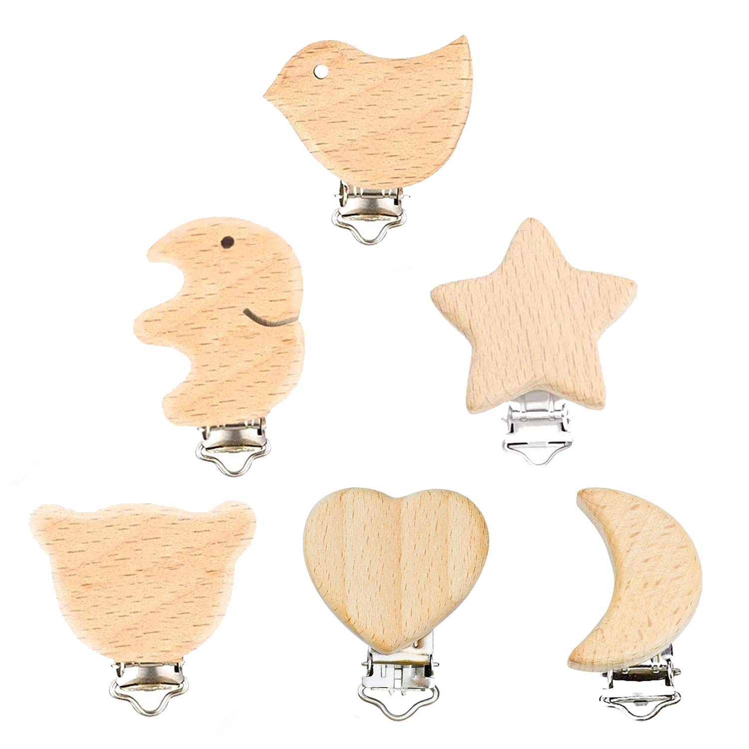 6 pieces wood pacifier clip, baby pacifier clips, dummy nipple holder for baby and child Care: 1. Please do not leave your child unattended with this toy. 2. If the product is damaged, dispose of it immediately, as this can lead to a potential risk of suffocation.Children with fully developed teeth can chew or tear pearls. Specifications: Material: wood and iron Color: natural color Style: three holes Apertur: approx. 8mm / 0.3 inches Size: approx. 44 × 30 mm / 1.7 × 1.2 inches Quantity: 16 pieces Delivery content: 6 × Baby Schnuller Clips A notice: 1. Please allow a tolerance of 1-3mm because of manual measurement.Thank you for your understanding. 2. The monitors are not equally calibrated, so the element color displayed in the photos can easily differ from the real object.Please take the right as standard.ideal gift for every baby: the pacifier clip can help your baby focus during care or stay happily with natural teeth pain relief.You can also put your babies appetite.A perfect gift for your little ones.Diverse applications: the wood is particularly robust and therefore very suitable for pacifier chains.This pacifier clip is suitable for the appeasement of the baby, clothing accessories folder, jewelry ornaments, ornaments accessories.The clip can also be used as a pacifier clip, holder, braces clips, holder for gripping plants etc.High quality and safer: The pacifiers are made of high -quality wood and iron, without damage to the body.The wood clips are welding, saliva-proof, color right- i.e. for babies completely harmless.6 shapes - birds, elephants, stars, moon, bear, heart shape. Especially the cute and different patterns attract the baby's attention.Of course wood pacifier clip: 6 premium clips for pacifiers made of high -quality wood in color nature.ROUNDHOLD with holes and iron clip.Always attach the pacifier holder directly to the child's clothing.Anti-out, anti-lost, for all pacifiers, bite rings and toys. 6 Stücke Holz Schnullerclip, Baby Schnuller Clips,Dummy Nippel Halter für Baby und Kind Beachtung: 1. Bitte lassen Sie Ihr Kind nicht unbeaufsichtigt mit diesem Spielzeug. 2. Wenn das Produkt beschädigt ist, sofort entsorgen, da dies zu einer potenziellen Erstickungsgefahr führen kann. Kinder mit voll entwickelten Zähnen können Perlen kauen oder zerreißen. Spezifikationen: Material: Holz und Eisen Farbe: Natürliche Farbe Stil: Drei Löcher Apertur: Ca. 8mm / 0,3 Zoll Größe: Ca. 44 × 30 mm / 1,7 × 1,2 Zoll Menge: 16 Stück Lieferinhalt: 6 × Baby Schnuller Clips Hinweis: 1. Bitte erlauben Sie eine Toleranz von 1-3mm wegen manueller Messung. Danke für Ihr Verständnis. 2. Die Monitoren sind nicht gleich kalibriert, deshalb kann die in den Fotos angezeigte Elementfarbe sich leicht von dem realen Objekt unterscheiden. Bitte nehmen Sie die richtige als Standard.Ideales geschenk für jedes baby: Der Schnullerclip kann Ihrem Baby helfen Fokus während der Pflege oder bleiben glücklich mit natürlichen Zahnen Schmerzlinderung. Sie können auch Ihren Babys Appetit machen. Ein perfektes Geschenk für Ihre Kleinen. Vielfältige Anwendungen: Das Holz ist besonders robust und damit sehr gut geeignet für Schnullerketten. Dieser Schnuller Clip ist geeignet für die Beschwichtigung des Babys, Bekleidungszubehör Ordner, Schmuck Ornamente, Ornamente Zubehör. Der Clip kann auch als schnullerclip, Handschuh Halter, hosenträgerclips, Halter für Greiflinge etc. verwendet werden. Hochwertige und Sicherer : Die Schnuller Clips sind aus hochwertigem Holz und Eisen, ohne Schaden für den Körper. Die Holzclips sind schweiß-, speichelfest,farbecht- also für Babys völlig unbedenklich. 6 FORMEN - Vögel, Elefanten, Sterne, Mond, Bär, Herzen form. Besonders die niedlichen und unterschiedlichen Muster ziehen die Aufmerksamkeit der Babys auf sich. Natürlich Holz Schnuller Clip: 6 Premium Clips für Schnuller aus hochwertigen Holz in der Farbe natur. Rundholz mit Löchern und Eisen-clip. Schnullerhalter immer nur direkt an der Kleidung des Kindes befestigen. Anti-out, Anti-verloren, für alle Schnuller, Beißringe und Spielzeug.6 Stück Schnuller Clip Nuckelclip Baby Clip Metall Holz Schnullerclip Säugling Schnuller Verschlüsse Halter Schnullerketten Clips Nippel Halter für Baby und Kind natürlich 6stk
