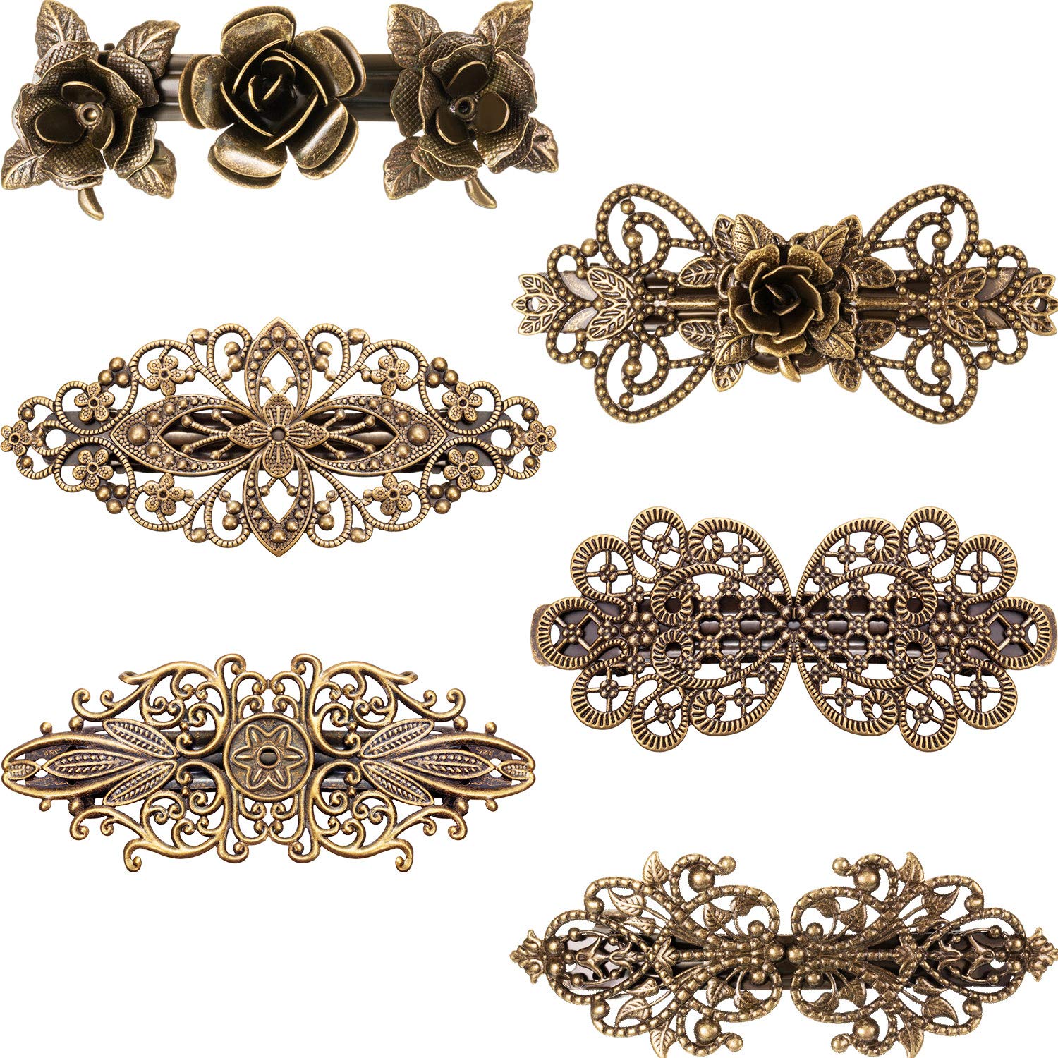 6 Pieces Vintage Hair Barrettes for Women Retro French flower Hair Clips Metal Bronze Hair Pins for Women Girl Hair Styling Accessories