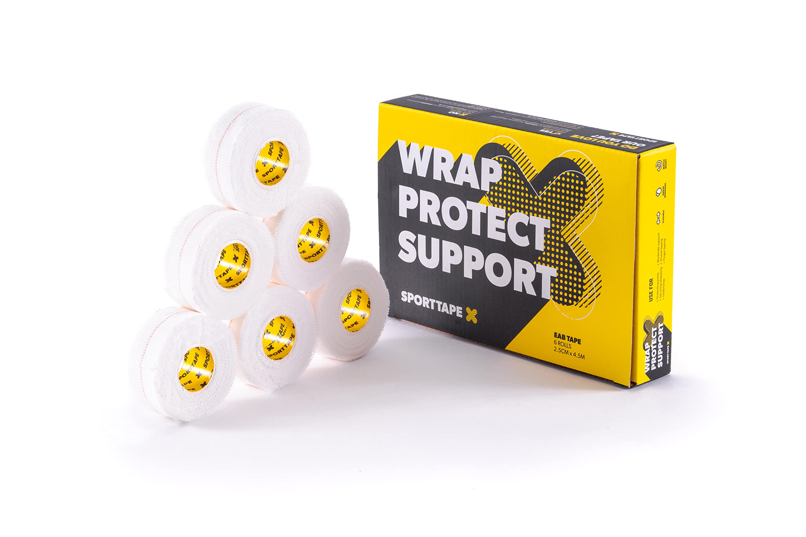 6 Rolls - SPORTTAPE EAB Fabric Strapping Tape - 2.5cm x 4.5m | Thumb Tape Rugby Finger & Toe Tape | Non Tear Elastic Adhesive Bandage Tape Strapping Tape for Sport and Medical Use 2.5cm x 4.5m - 6 Rolls