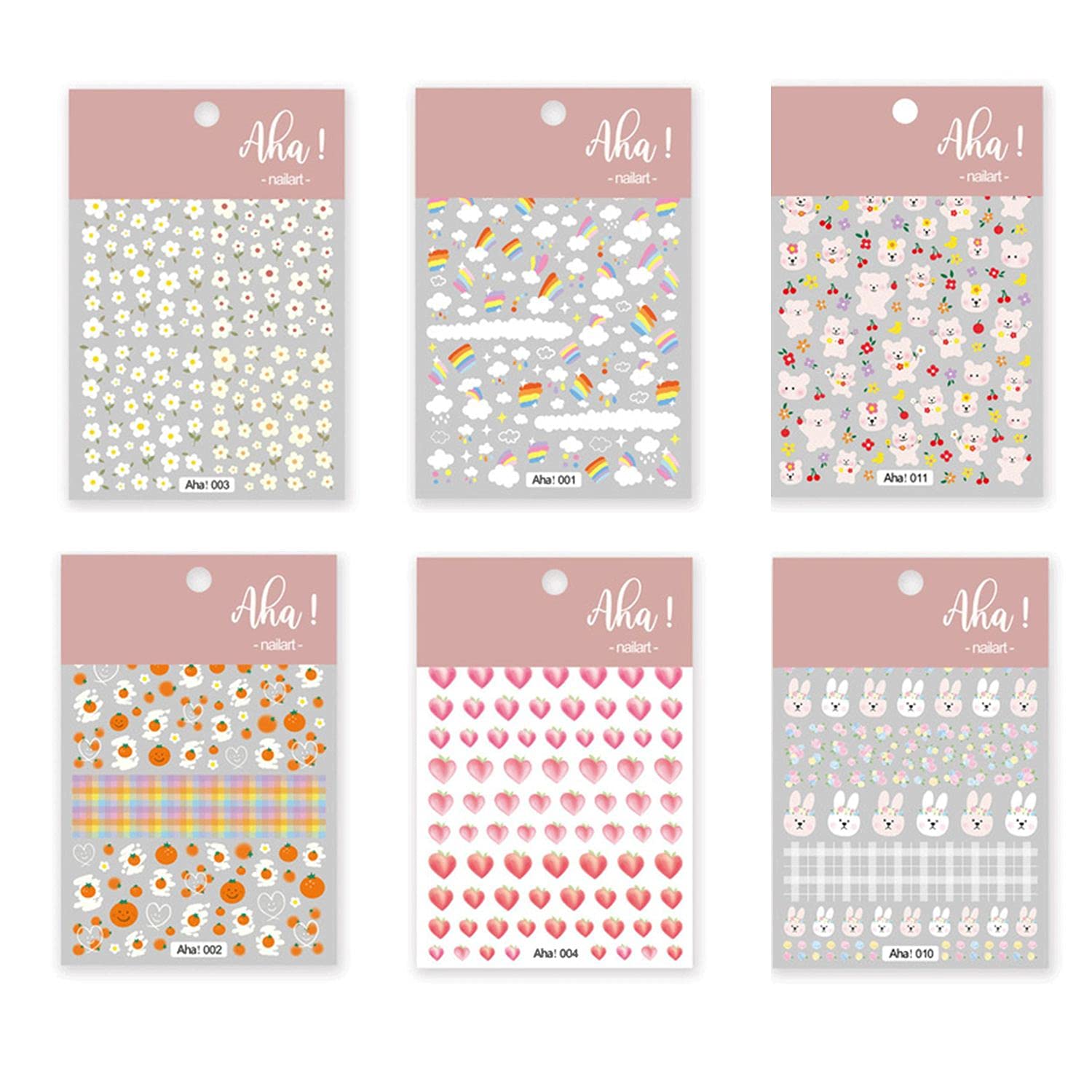 6 Sheets Multiple Painting Bear Painting Bear Summer Nail stickers 3D Sticker Nail Art Cartoon