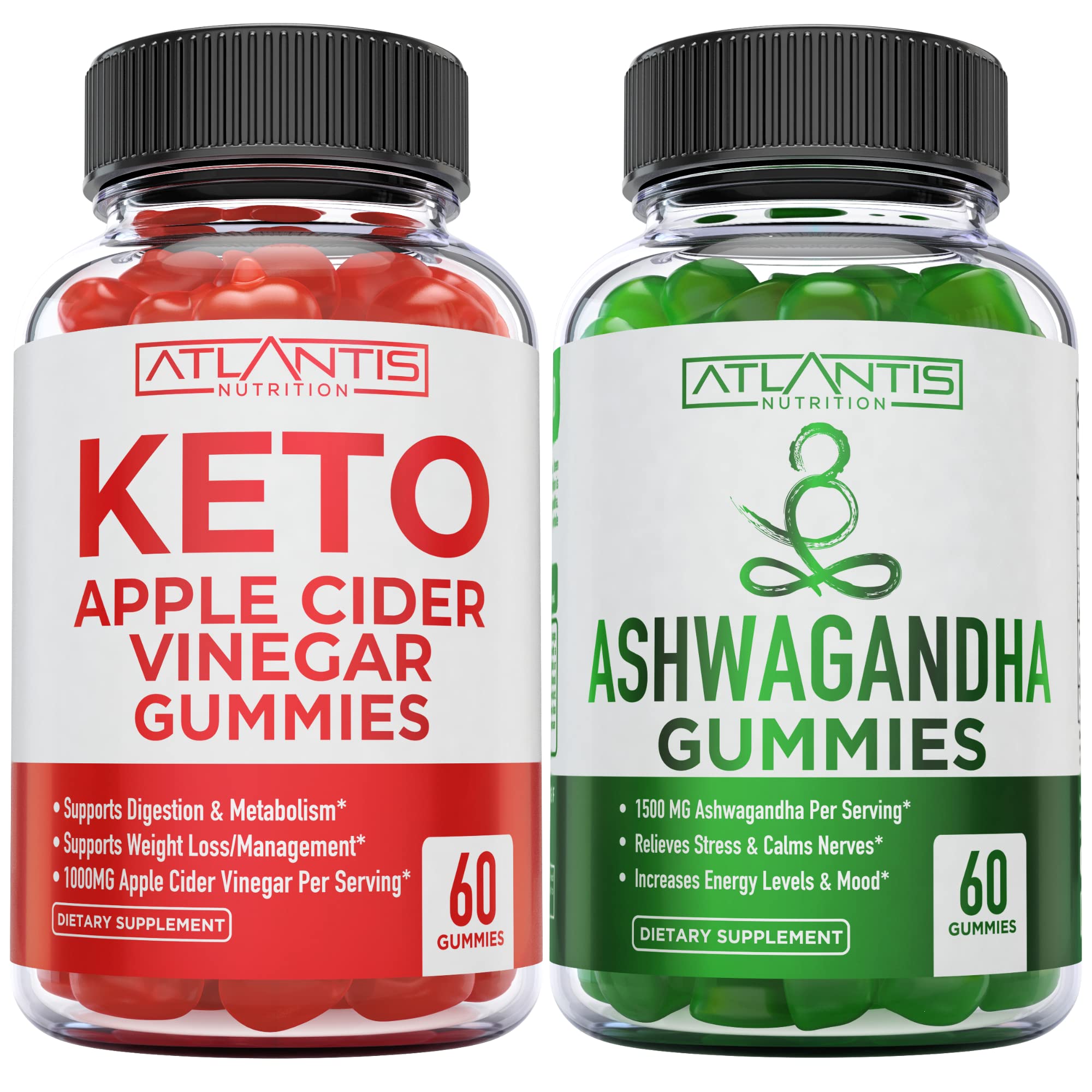 60 Keto Apple Cider Vinegar Gummies Advanced Weight Loss + 60 Ashwagandha Gummies - 1500MG Ashwagandha Per Serving