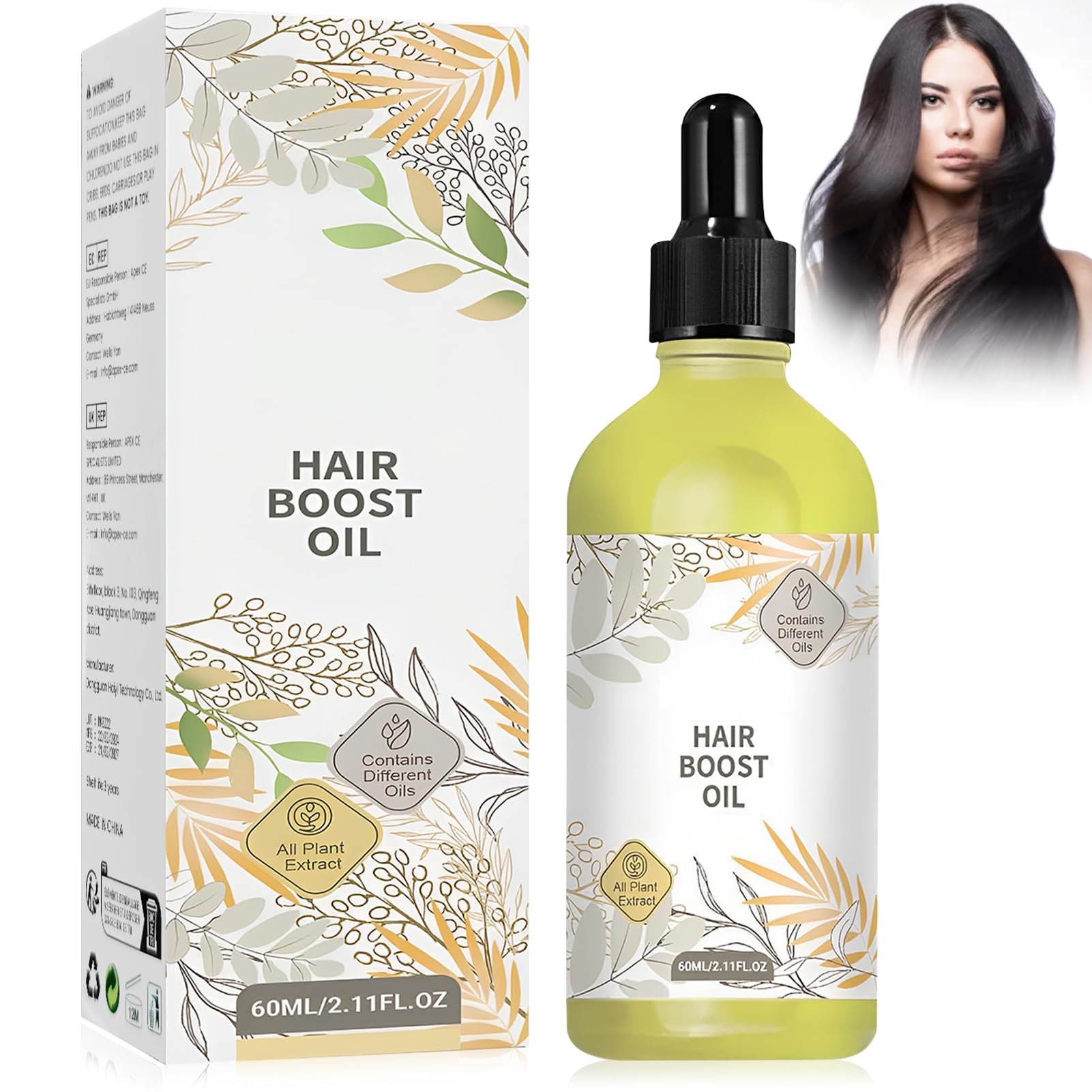 Specification: Product name: Natural rosemary oil hair serum for hair growth Main ingredients: lavender oil, rosemary oil, castor oil, coconut oil, olive oil Net content: 60 milliliters (ml) Applicable people: women and men of all hair types Frequency of application: 1 to 2 times a day Precautions: 1. Allergy test: Please carry out an allergy test on the inside of your wrist or behind your ear before use.If you feel symptoms, please break the application immediately and consult a doctor. 2. Please avoid contacting the product with your eyes.If it accidentally gets into your eyes, rinse it out with a lot of water immediately and see a doctor. 3. Please store the product in a cool and dry place, far from direct sunlight and high temperatures. 4. To achieve the best results, please insist on regular and frequent application. Warnings NoDIEE ESTAMPLE INFORMATIONThe natural hair growth hair oil not only donates dry hair moisture, restores the moisture of the hair and seals proteins, but also prevents hair loss and strengthens the hair root.It offers comprehensive hair care, makes hair soft, smooth and elastic and ensures healthy, shiny hair in the long term.Easy applicationApply the Hair Growth Serum 1 to 2 times a day by applying a reasonable amount to the hair and massage it with your fingers for 2-3 minutes until the hair oil is absorbed.Without additional complicated care steps, it can easily be integrated into the daily hair routine (everyone has different degrees of absorption of the product, please insist on a long -term application).Comprehensive repairNo matter whether normal, greasy, dry or damaged hair, our hair growth oil can be used effectively.It improves dry and damaged hair, repairs split ends and reduces hair breakage and damage.With regular use, the hair becomes healthier and glossy and receives comprehensive repair and protection.Hair growthThe Rosemary Oil for Hair Hair oil revitalizes the hair follicles and effectively promotes hair growth.Daily application and massaging the scalp improves the health of the scalp, the blood circulation of the scalp is stimulated and resting hair follicles activated.This grows the hair faster and denser.It is particularly suitable for people who want to increase their amount of hair and improve their hair quality.Natural ingredientsOur natural rosemary oil hair growth serum consists of a variety of natural ingredients such as lavender oil, rosemary oil, castor oil, coconut oil and olive oil.These ingredients are natural and gentle, without chemical additives, and ensure that the product can be used safely on the skin, on the body, in hair and on the eyebrows.It is suitable for all hair types.Spezifikation: Produktname: Natürliches Rosmarinöl Haarserum Für Haarwachstum Hauptzutaten: Lavendelöl, Rosmarinöl, Rizinusöl, Kokosöl, Olivenöl Nettoinhalt: 60 Milliliter (ml) Anwendbare Personen: Frauen und Männer aller Haartypen Häufigkeit der Anwendung: 1 bis 2 mal täglich Vorsichtsmaßnahmen: 1. Allergietest: Bitte führen Sie vor der Verwendung einen Allergietest an der Innenseite Ihres Handgelenks oder hinter Ihrem Ohr durch. Wenn Sie Beschwerden verspüren, brechen Sie die Anwendung bitte sofort ab und konsultieren Sie einen Arzt. 2. Bitte vermeiden Sie den Kontakt des Produkts mit den Augen. Wenn es versehentlich in Ihre Augen gelangt, spülen Sie es sofort mit viel Wasser aus und suchen Sie einen Arzt auf. 3. Bitte lagern Sie das Produkt an einem kühlen und trockenen Ort, fern von direkter Sonneneinstrahlung und hohen Temperaturen. 4. Um die besten Ergebnisse zu erzielen, bestehen Sie bitte auf einer regelmäßigen und häufigen Anwendung. WARNHINWEISE NOTIEFENWIRKSAME FEUCHTIGKEITSPFLEGEDas natürliche haarwachstum haaröl spendet nicht nur trockenem Haar Feuchtigkeit, stellt die Feuchtigkeit des Haares wieder her und versiegelt Proteine, sondern verhindert auch Haarausfall und stärkt die Haarwurzeln. Es bietet umfassende Haarpflege, macht das Haar weich, geschmeidig und elastisch und sorgt langfristig für gesundes, glänzendes Haar. EINFACHE ANWENDUNGTragen Sie das hair growth serum 1 bis 2 Mal täglich auf, indem Sie eine angemessene Menge auf das Haar auftragen und es 2-3 Minuten lang mit den Fingern einmassieren, bis das Haaröl absorbiert ist. Ohne zusätzliche komplizierte Pflegeschritte kann es leicht in die tägliche Haarroutine integriert werden.(Jeder hat unterschiedliche Absorptionsgrade des Produkts, bitte bestehen Sie auf einer langfristigen Anwendung). UMFASSENDE REPARATUREgal ob normales, fettiges, trockenes oder geschädigtes Haar, unser hair growth oil kann effektiv verwendet werden. Es verbessert trockenes und geschädigtes Haar, repariert gespaltene Enden und reduziert Haarbruch und Schäden. Bei regelmäßiger Anwendung wird das Haar gesünder und glänzender und erhält umfassende Reparatur und Schutz. FÖRDERT DAS HAARWACHSTUMDas rosemary oil for hair Haaröl revitalisiert die Haarfollikel und fördert effektiv das Haarwachstum. Durch tägliches Auftragen und Massieren der Kopfhaut wird die Gesundheit der Kopfhaut verbessert, die Durchblutung der Kopfhaut angeregt und ruhende Haarfollikel aktiviert. Dadurch wächst das Haar schneller und dichter. Es ist besonders geeignet für Menschen, die ihre Haarmenge erhöhen und ihre Haarqualität verbessern möchten. NATÜRLICHE INHALTSSTOFFEUnser natürliches rosmarinöl haarwachstum serum besteht aus einer Vielzahl natürlicher Inhaltsstoffe wie Lavendelöl, Rosmarinöl, Rizinusöl, Kokosöl und Olivenöl. Diese Inhaltsstoffe sind natürlich und sanft, ohne chemische Zusätze, und stellen sicher, dass das Produkt sicher auf der Haut, am Körper, im Haar und auf den Augenbrauen angewendet werden kann. Es ist für alle Haartypen geeignet.60 ml Natürliches Rosmarinöl Haaröl zum Haarwachstum Beschleunigen Mit Rosmarinöl Rizinusöl Hair Growth Serum Haare Schneller Wachsen Haaröl Kopfhaut Reduzieren Haarausfall Stimuliert Haarwachstum Goldgelb-B