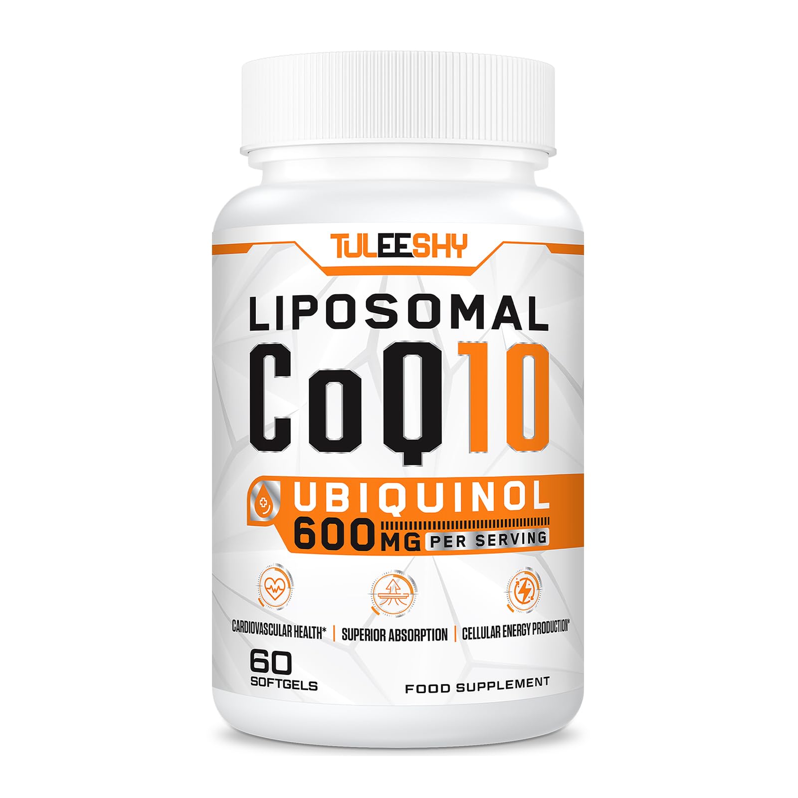 Tuleeshy liposomal delivery system ensures maximum absorption of ubiquinol, the active form of Coenzyme Q10. This means that your body can actually use the CoQ10 efficiently, making it more effective than regular CoQ10 supplements. INGREDIENTS Ubiquinol (Active Form of Coenzyme Q10), Phosphatidylcholine (from Non-GMO Sunflower oil), Softgel Capsule (Gelatin, Vegetable Glycerin, Purified Water). DIRECTIONS As a food supplement, it is suggested that take 2 softgels per day with meal, or as directed by your healthcare practitioner. For best results, please take it continuously for a period of time. SAFETY WARNING Food supplements should not be used as a substitute for a varied diet. Keep out of reach of children. Do not exceed recommended daily dose. Store in a cool, dry place at room temperature. Keep away from heat and humidity. Please consult your physician before using this supplement if you are undergoing treatment for a medical condition. Discontinue use if any serious adverse reaction occurs. Do not use if safety seal is missing. See moreCrafted for Optimal Wellness: Elevate your daily routine with our Liposomal CoQ10. Meticulously sourced for quality, our product stands out with its natural, additive-free composition. Ideal for various lifestyles, it caters to a diverse range of individuals, promoting vitality and well-being. Experience the benefits natural goodness – a trusted choice for those embracing a holistic approach to health!. Easy and Effective: Enjoy the ease of taking 2 softgels daily with meals for optimal benefits. With 60 softgels per bottle, it provides a month supply. Our Liposomal Coenzyme Q10 softgels are designed for easy swallowing, adding convenience to your daily routine. Optimal CoQ10 Absorption: Tuleeshy CoQ10 is encapsulated in liposomes, mimicking the body's natural cell structure. This advanced delivery system enhances absorption, ensuring that your body can make the most of every milligram. Unlike regular CoQ10 supplements, our Liposomal CoQ10 is designed for enhanced bioavailability. This means quicker and more efficient absorption, allowing you to experience the benefits sooner. Enjoy the antioxidant properties of CoQ10: Coenzyme Q10 is a crucial component in the production of cellular energy. By supplementing with our Liposomal CoQ10, you're providing essential support for overall energy levels and vitality. Elevate your wellness journey with our Liposomal CoQ10 – a superior choice for those who prioritize quality and efficacy. Potent 600mg Ubiquinol: Are you looking to supercharge your heart and energy levels? Tuleeshy Liposomal CoQ10 Ubiquinol Softgels are here to help you achieve just that. With the bioactive form of Ubiquinol CoQ10 600mg in each serving, you're giving your body the advanced support it deserves. In addition, Liposomal Ubiquinol is readily available for direct absorption by the body, making it more easily utilizable than Ubiquinone.