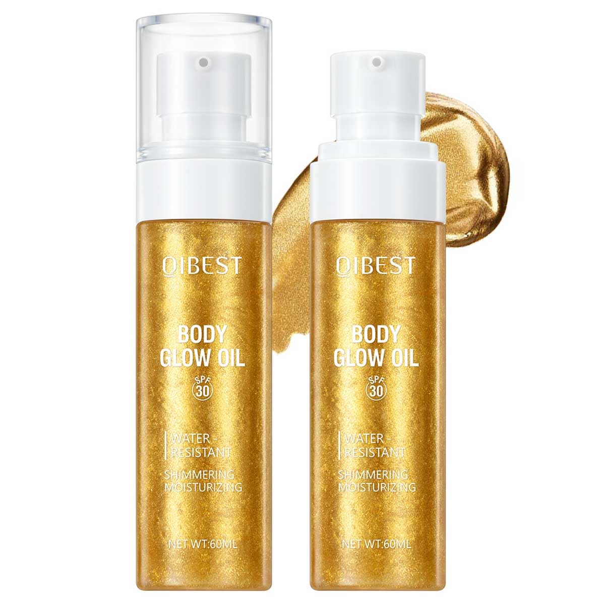 2 Shades, Endless Glam Includes two luminous tones—Rose Gold for a soft romantic glow and Pure Gold for that fierce sun-kissed finish. Mix or match to express your summer mood and highlight your beauty your way. For All Skin Tones Body Parts From collarbones to legs, shoulders to arms—this shimmer oil enhances every curve and contour. The buildable formula flatters every skin tone, delivering a flawless, radiant finish. Sun-Kissed With Protection Shine safely! Our glow oil adds radiant color while helping protect your skin from harsh sun exposure, so you can sparkle under the sun without compromising hydration or comfort. Hydrating Lightweight Infused with nourishing oils, this body highlighter absorbs instantly without stickiness, leaving skin silky-smooth, deeply moisturized, and subtly scented with a fresh, sexy glow. Dazzling Glow Instantly Achieve a golden goddess shimmer in seconds! This body glow oil delivers a stunning 3D highlight effect that catches the light from every angle—perfect for beach days, date nights, or festivals.
