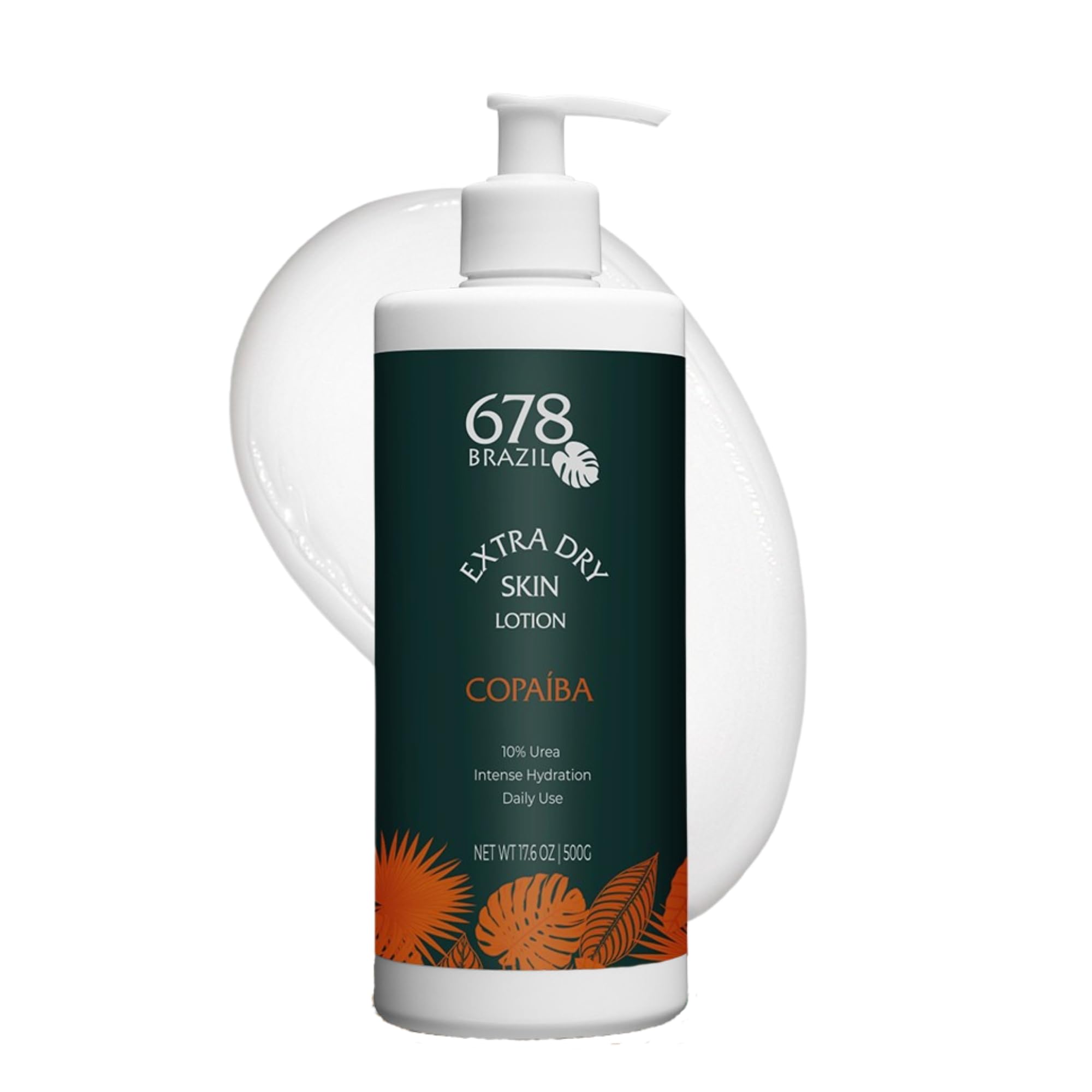 BEAUTY IS IN OUR DNA 678Brazil is a premium line of dermocosmetics, developed through extensive research and advanced technology, bringing the natural treasures of the Brazilian Rainforest into our formulations. Each product features active ingredients like Buriti, Copaiba, and Camu-Camu, embodying the wisdom of indigenous traditions. We celebrate our heritage with sophisticated, efficient solutions that ensure your skin radiates health and vitality. VERSATILE SKIN CARE Ideal for daily use, our non-greasy formula is suitable for all skin types. Whether combating environmental stressors or severe dryness, this lotion provides a soothing barrier, leaving your skin feeling revitalized, smooth, and deeply moisturized. Embrace the natural benefits of our cruelty-free, paraben-free, phthalate-free, sulfate-free, and dye-free formulation for healthier-looking skin. LONG-LASTING MOISTURE Our formula was designed to promote water retention, locking in moisture, ensuring prolonged hydration without greess. It penetrates deeply to nourish and renew skin cells, maintaining optimal moisture balance throughout the day. NATURAL PROPERTIES OF COPAIBA Featuring Copaiba oil, which is derived from a tree native to the Brazilian Rainforest, known for its nourishing and relieving properties, and Passion Fruit, this lotion soothes and rejuvenates the skin, promoting a healthier complexion. INTENSE HYDRATION 678Brazil Extra Dry Skin Moisturizing Lotion provides deep hydration and instant relief for severely dehydrated skin. This formula contains Copaiba, Passion Fruit, and 10 Urea, which work together to effectively repair and soften rough skin. It offers immediate relief from itching, flaking, and redness.