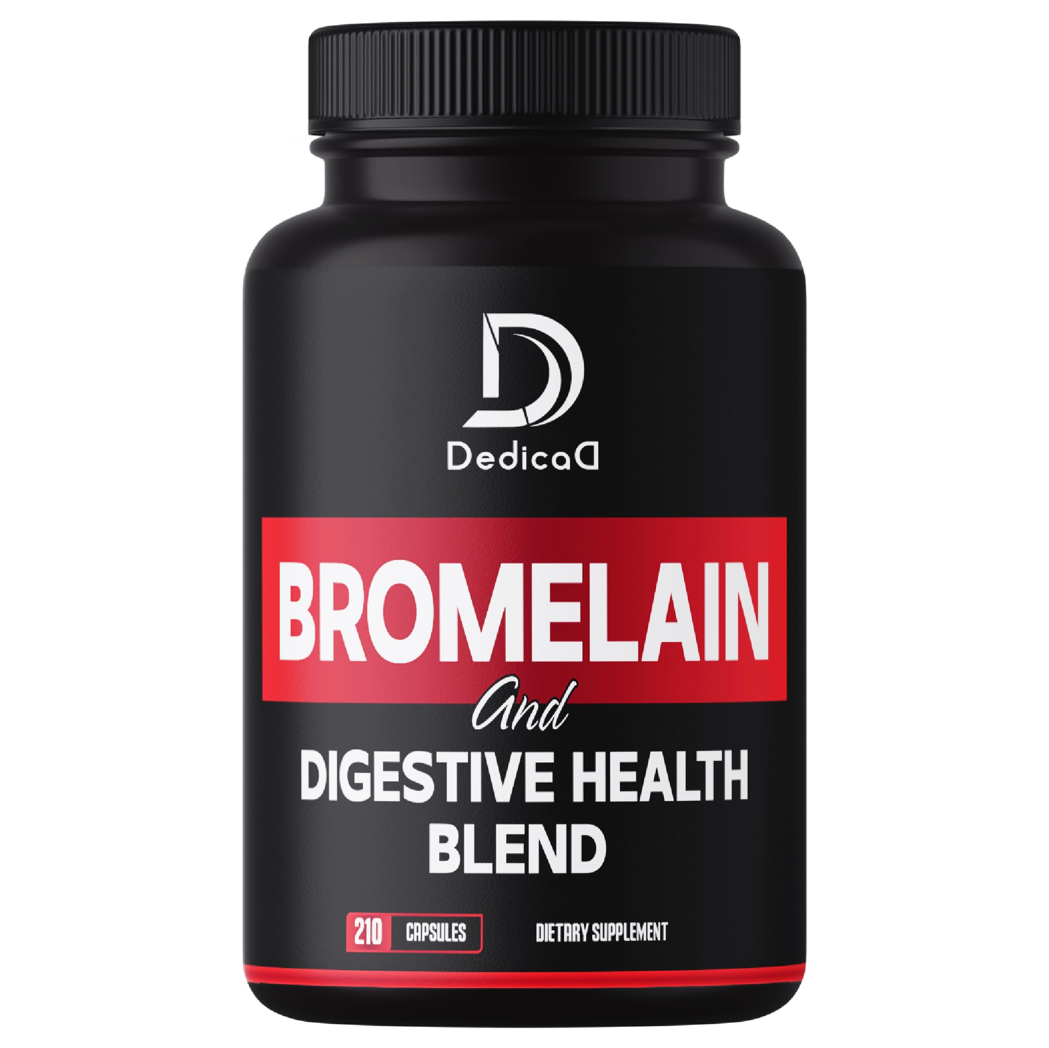 Trust DedicaD Premium Supplement could well protect your wellness and help you in living a fulfilling life. We put our customers' interests first and are dedicated to providing quality products. Our Bromelain Supplements product is produced by a Halah cGMP manufacturer with organic ingredients using cutting-edge extraction technology. Vegetarian-friendly, global third-party testing. 1000Mg Bromelain pills are simple to use with 1 pack of 210 counts supply for 105 servings (105 Days) take only 2 easy-to-swallow capsules daily Start today!. Bromelain Capsules support digestive system, immunity, breathing, and joint health Safe solution to wellness and happiness. Bromelain Capsules from 6 potent ingredients, including Digestive Health Blend: Organic Turmeric Curcumin Root, Ginger Root, Papaya Fruit, Apple Pectin, and Quercetin with Bromelain 500mg - 600 GDU (From Pineapple) Special formula for men and women.