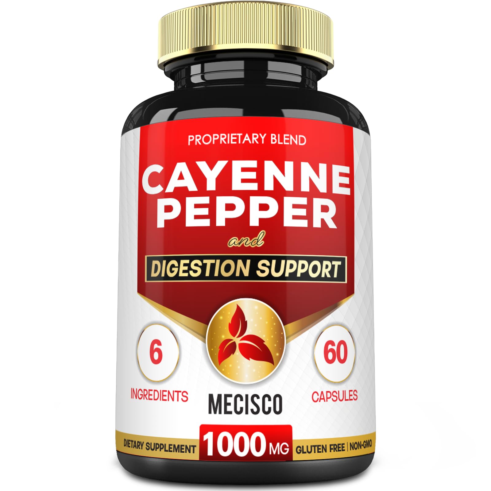 ✓ Satisfaction Guaranteed: Mecisco Cayenne Pepper Capsule with a comprehensive refund policy. Our mission is to offer our customers beneficial supplements of high quality. If, for any reason, you are dissatisfied with your order, please don't hesitate to reach out to us to request a refund. Your satisfaction is our top priority. ✓ Outstanding Value: All Natural Mecisco Cayenne Pepper Supplement is sourced from a trusted certificated facility manufacturer by strict processes to ensure international quality standards such as cGMP, ISO, FDA Registered facility USA verified Laboratory. ✓ Easy to Use: 1 package with 60 counts. Take 2 Cayenne Pepper pills equivalent to 1000mg per serving for 30-day consumption. Suitable for vegetarians. An optimal solution to protect consumers' health with a modern lifestyle. ✓ Extra Formula: In addition to the main ingredient Cayenne Pepper powder, we also combine 5 herbal ingredients in a capsule Ginger Root, Organic Turmeric Curcumin Root, Ceylon Cinnamon Bark, Beet Root, and Black Pepper. Comprehensive support so your body can absorb new benefits for the new single day. ✓ Advance Overall Health: Cayenne Pepper Powder is a type of hot chili pepper, used in cooking for its heat and flavor. Beyond its culinary uses, cayenne pepper has been used as a dietary supplement for its potential health benefits. Cayenne Pepper extract supports digestion, body management, and immunity.