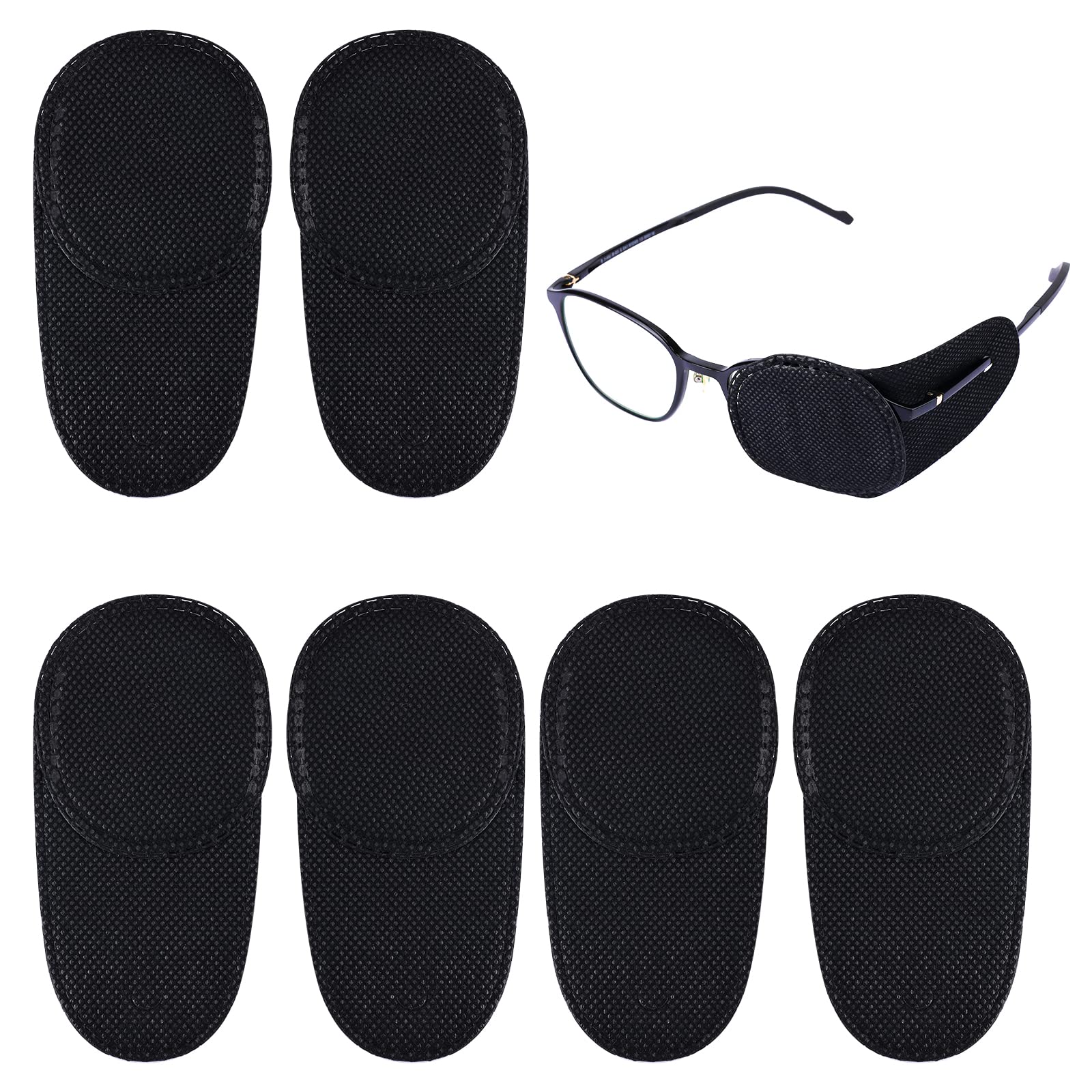 6pcs Eye Patches for Glasses, Reusable Non-Woven Fabric Eye Patch to Cover Left Right Eye Improve Vision for Kids' & Adults' Lazy Eye Amblyopia Strabismus (Black, Large Size)