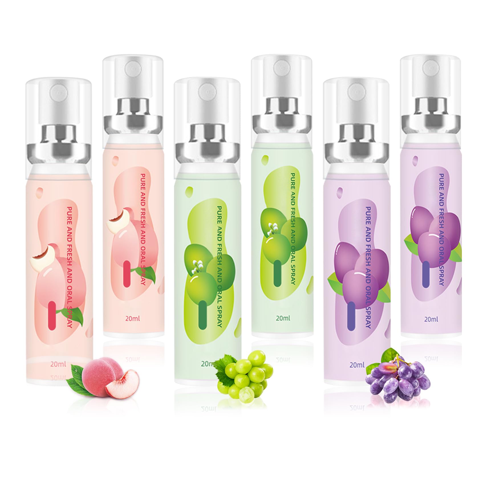 Set: Contains 3 different fruit flavors, 2 bottles of each, lasts a long time, great value and cute, perfect for gift giving. Steps to Use: Before using, please open the cap of the oral breath spray and hold the bottle vertically, gently point it at your mouth and press it 2-3 times, the simple application procedure will give you a fresh breath easily and quickly. Portable: Compact, lightweight and perfect travel size, it is easy to carry around and fits easily into bags, pockets, handbags, suitcases, etc. It is convenient to use it anytime and anywhere during appointments, shopping, parties, work, travel and daily life. Long Lasting: Breath spray is long lasting, gentle and comfortable to use, and the nozzle is designed to be flexible and easy to use, making it the perfect choice for daily oral cleansing and care. Confident and Attractive: Mouth spray quickly eliminates the embarrassment of bad breath and deep cleanses your mouth, leaving it refreshed, moisturized and fresh, boosting your confidence and attractiveness.