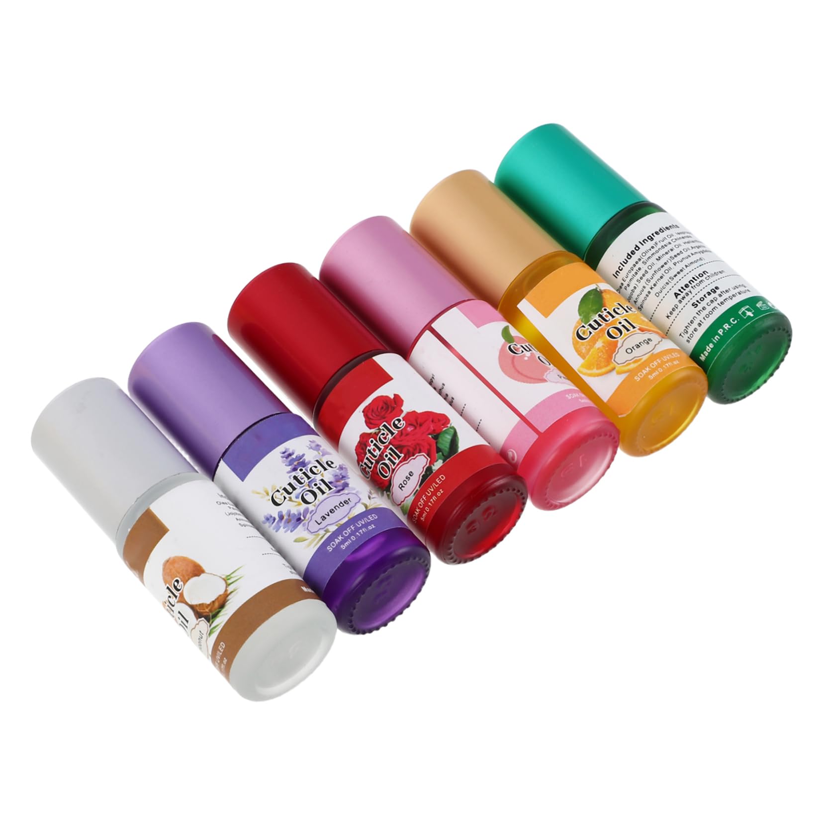 Packages of 6 x cuticle oil (5 ml bottle) Features - Roller: The rollerball applicator ensures precise dosing, making it convenient to carry and use for instant nail nourishment. - Nail strengthening: Regular use strengthens nails, reduces breakage, and promotes a healthy appearance. -Non-greasy and fast-absorbing: Penetrates quickly without leaving a greasy residue, immediately improving dryness around the nails and enhancing the hand's nail care. -Product Information: Nourishing Cuticle Oil -Material: Glass Cuticle Moisturizer -Gentle and Natural: With natural and non-irritating ingredients, suitable for all skin types, providing a soft touch and nourishing moisturizing oil for your nails. -Color: Multi-cuticle Oils for Nails -Size: 6.20 x 1.80 x 1.80 cm 2.44 x 0.71 x 0.71 in Roll-on Cuticle Oil -Effective Repair: Works on nail edges, addressing ingrown nails and cracks, making it an essential natural cuticle oil for nails. Product Information: Moisturizing Cuticle Oil. Designed for convenience and effectiveness, this cuticle oil roller is a must-have for nail care enthusiasts. Nourishing nail edge oil. Use regularly for healthy, well-groomed cuticles and nails. This revitalizing cuticle oil's natural ingredients nourish and repair, while the roll-on applicator ensures a mess-free experience.