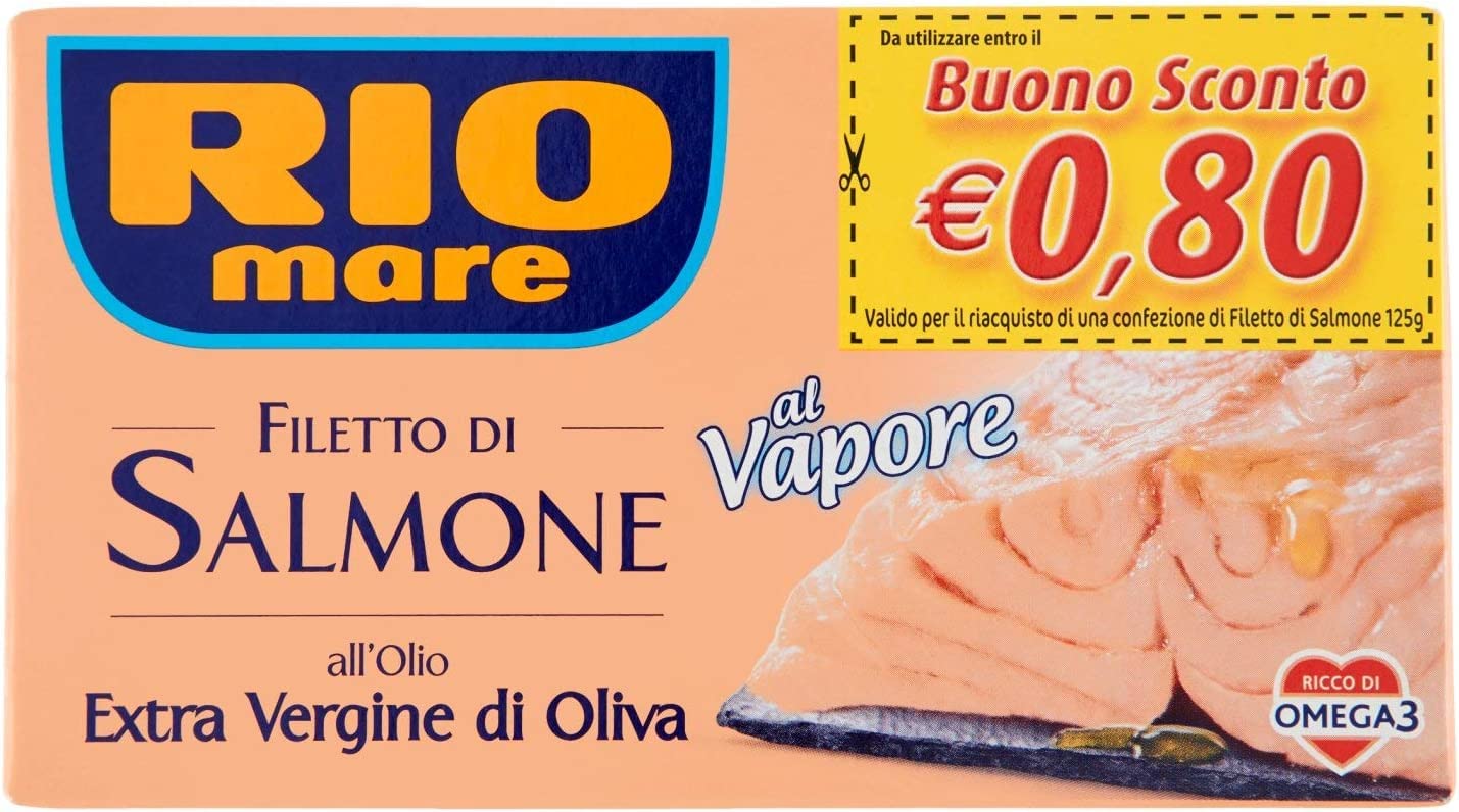 6X Rio Mare Filetto di Salmone Cotto al vapore all'Olio Extra Vergine di Oliva gestoomde zalmfilet met extra vierge olijfolie 125g rijk aan Omega 3