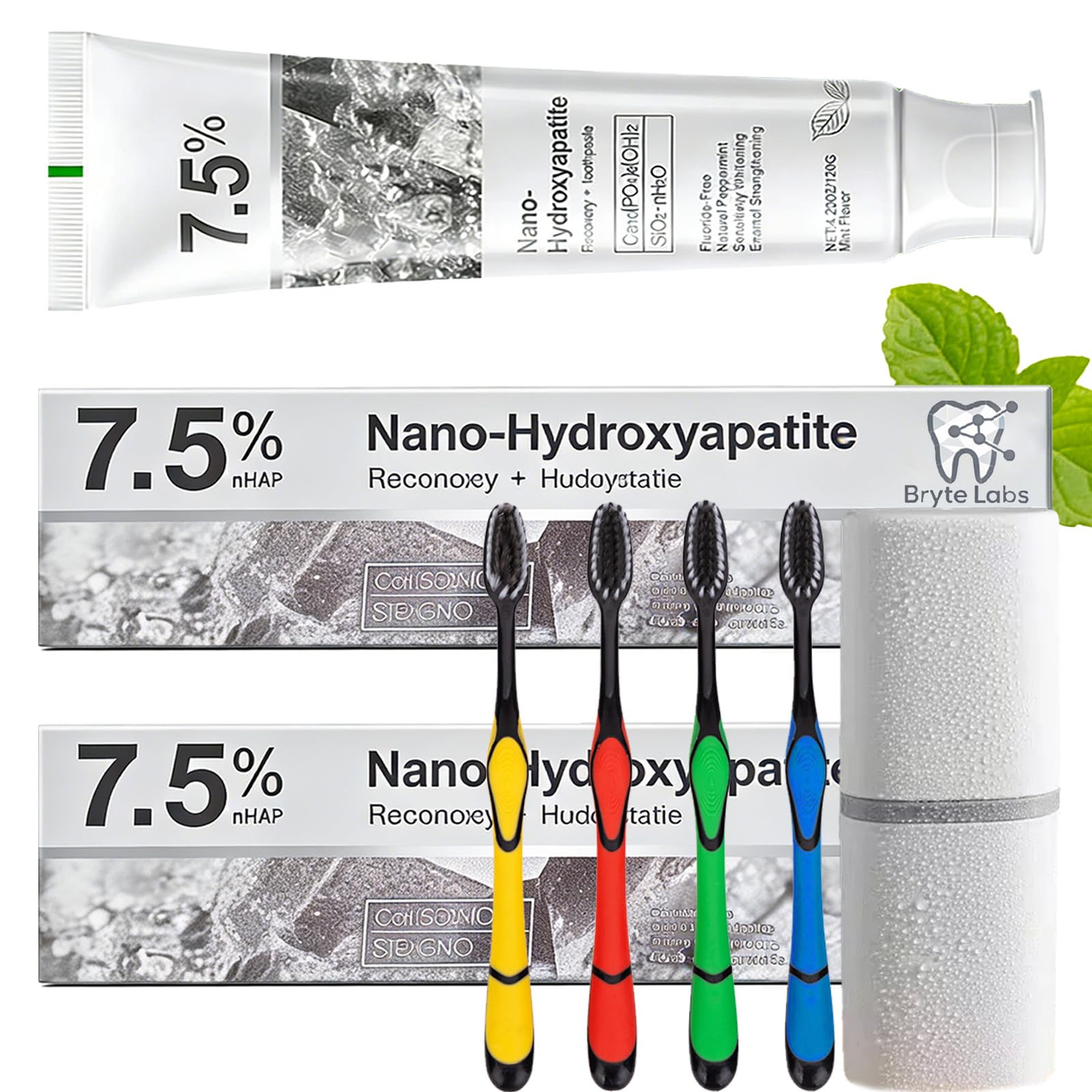 Daily Care for Strong Teeth Healthy Gums Designed for consistent daily use to promote lasting enamel strength, gum health, and overall oral wellness. Brush twice daily for a cleaner, fresher, and more resilient smile. Long-Lasting Fresh Breath with Natural Mint Infused with refreshing natural mint, it neutralizes odor-causing bacteria and helps maintain a clean oral environment. Enjoy lasting freshness that extends well beyond your brushing routine. Fluoride-Free Safe for Sensitive Teeth Free from fluoride, sulfates, parabens, and artificial additives. The gentle, non-abrasive formula cleans deeply while being kind to sensitive teeth and gums, making it suitable for daily use by the whole family. Remineralizes Gently Whitens Teeth Helps rebuild mineral density on the tooth surface while gently lifting surface stains. Supports natural whitening through remineralization, leading to a visibly brighter smile without harsh abrasives or bleaching agents. 7.5 Nano-Hydroxyapatite Enamel Repair Formulated with 7.5 nano-hydroxyapatite—the same mineral naturally found in teeth—this toothpaste actively bonds to enamel, repairing microscopic damage, reducing sensitivity, and strengthening teeth against daily wear and acid erosion.