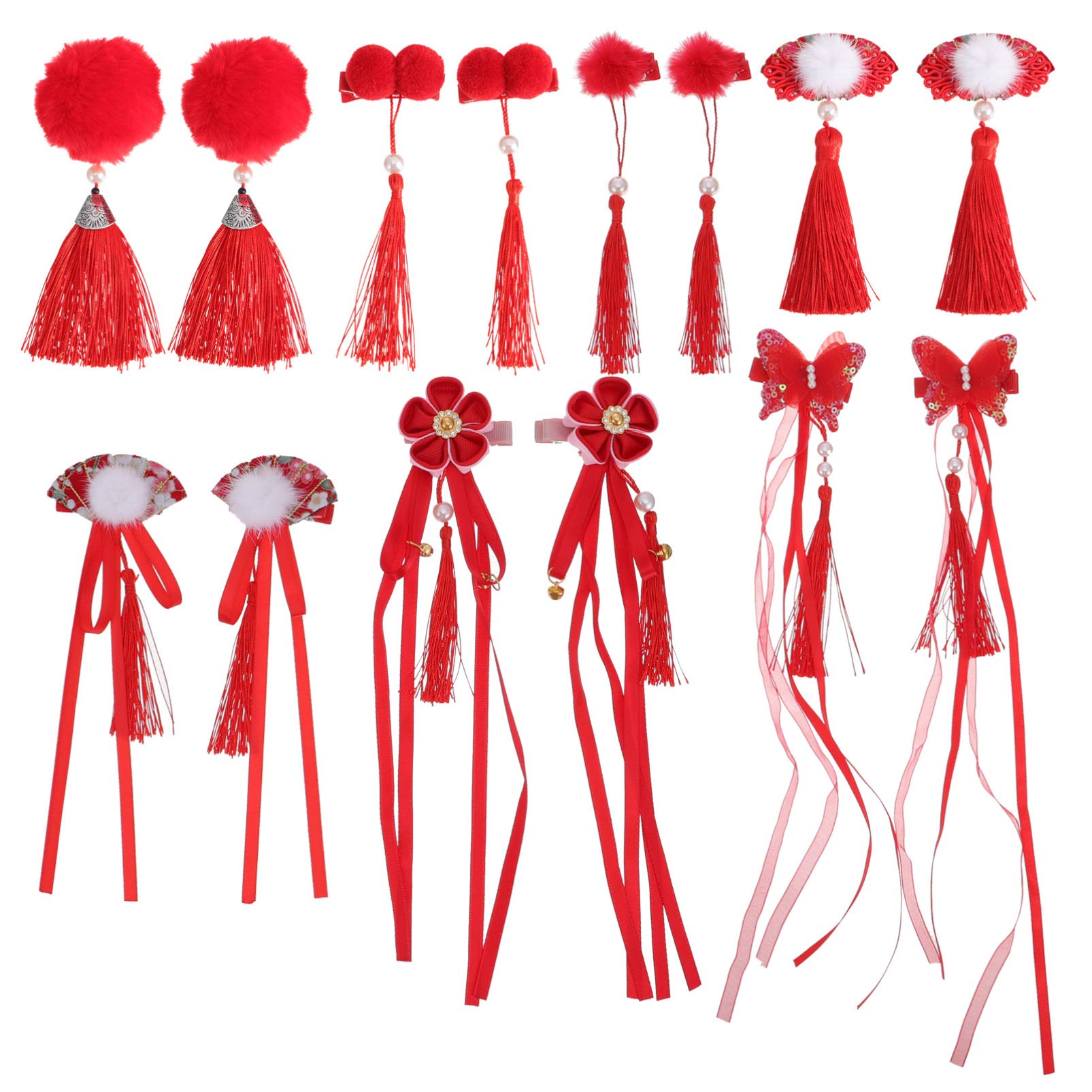 Package List 7 Pairs x Hair Accessories Characteristics -Size: About 14.00X5.00X5.00cm/5.50X1.97X1 Children Headdress. -Made with exquisite craftsmanship, it is comfortable to touch, beautiful and practical hair Jewelry. -Made of cloth material, light weight, good air permeability, your child can wear it easily Chinese Style Hair Clips pins. -Color: Random Hairy Balls Barrettes -With a creative and exquisite appearance, it can make your child more and beautiful cute hair pins. -Material: Fabric Tassel Hairpins -With bright colors, it can well help to set off a festive atmosphere new year hair barrette. -You can give your lovely little daughter a beautiful and unique hair accessory kit as a tassel hair clip. Goods Description Hair Clips for women girls The festive red color can better set off the atmosphere and make your child more beautiful and lovely.chinese new year hair bow Made with exquisite craftsmanship, it has a good texture and will not be easily damaged.Furry Ball Tassel Barrettes This is a set of Chinese style children's hair accessories, made of fabric materials, safe and gentle, light and comfortable, and can serve you for a long time DIRECTIONS keep clean