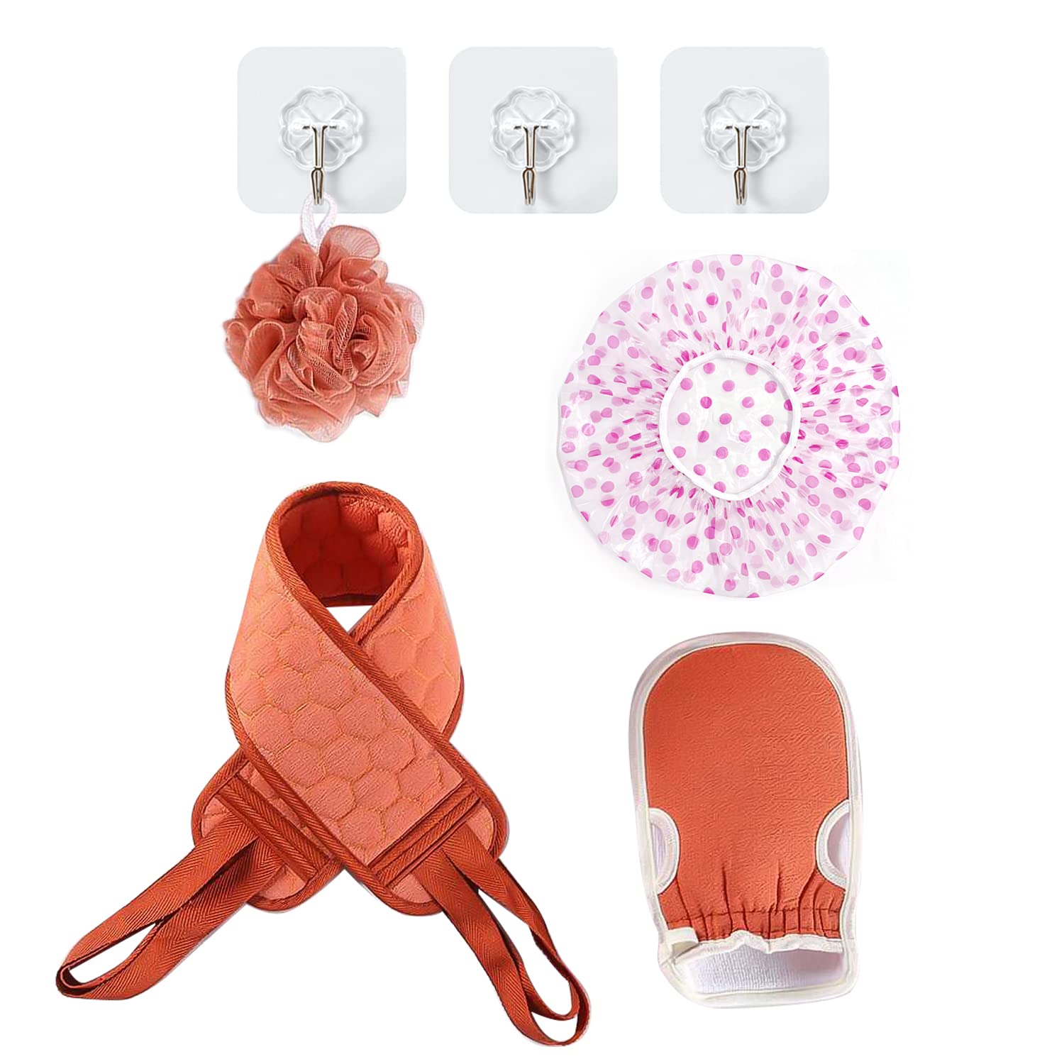 fiber? High quality material, beautifully designed, the fabric is very flexible and ensures that you do not get tingling.?Practical tools? Provide skin regeneration, the microcirculation of the blood, remove dead and dirty skin in the bathtub or shower, massage your body in all directions for a comprehensive and pleasant massage.?Package included? You will receive our body peeling set, including 1 back train, 1 bath towel, 1 bath ball, 3 hooks, 1 shower hood.     Produktdetails:   Farbe: ziegelrot   Material: pflanzliche Fasern.   Eigenschaften: stark und langlebig, reichhaltiger Schaumstoff   Praktisch: ein Set für Ihren täglichen Bedarf.?Wiederverwendbar? Hochwertiges Material, stark und langlebig, ungiftig und geruchlos. Die Reinigung dieser Werkzeuge mit warmem Wasser verhindert ein Verziehen und hält lange. ?Einfach zu bedienen? Vor Gebrauch 1-2 Minuten in warmem Wasser einweichen, einfach mit Wasser abwaschen, nachdem der Peeling-Schwamm nach Gebrauch abgekratzt wurde. ?Naturfaser? Hochwertiges Material, schön gestaltet, der Stoff ist sehr flexibel und sorgt dafür, dass Sie kein Kribbeln bekommen. ?Praktische Werkzeuge?Fördern Sie die Hautregeneration, die Mikrozirkulation des Blutes, entfernen Sie effektiv abgestorbene und schmutzige Haut in der Badewanne oder Dusche, massieren Sie Ihren Körper in alle Richtungen für eine umfassende und angenehme Massage. ?Paket enthalten? Sie erhalten unser Körperpeeling-Set, einschließlich 1 Rückenzug, 1 Badetuch, 1 Badekugel, 3 Haken, 1 Duschhaube.