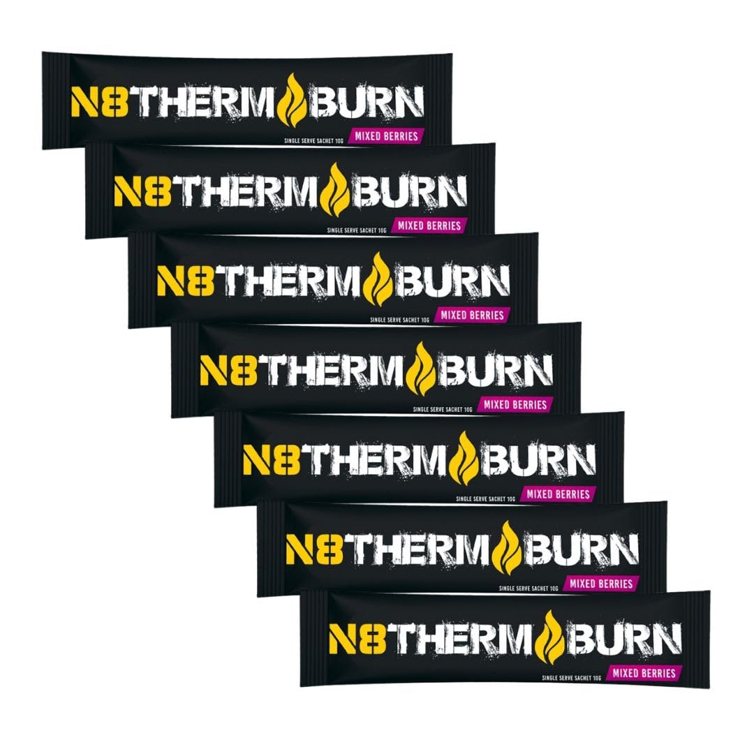 N8 Thermoburn Sachet - Metabolism Support Fat Burner: This pack of 7 x 10g sachets is designed to increase metabolism, maintain optimal thermogenesis and aid weight loss. Perfect for improving workout performance and achieving your physique goals. INGREDIENTS Green Coffee Extract DIRECTIONS Take one serving with 250ml of water SAFETY WARNING Keep out of reach of children Unique RED FRUITS flavor. GMP Certified, Halal. Green Tea Extract and Green Coffee: Increase metabolism and promote fat burning. Garcinia Cambogia: Helps reduce appetite and inhibit fat production. N8 Thermoburn ingredients are carefully selected for their beneficial effects on metabolism and fat burning. N8 Thermoburn Sachet is formulated to provide comprehensive support for metabolism and fat burning. N8 Thermoburn Sachet - Support au métabolisme et brûleur de graisses : Ce lot de 7 sachets de 10g est conçu pour augmenter le métabolisme, maintenir une thermogenèse optimale et favoriser la perte de poids. Parfait pour améliorer les performances d'entraînement et atteindre vos objectifs de physique. INGRÉDIENTS Extrait de café vert MODE D'EMPLOI Prenez une portion avec 250 ml d'eau AVERTISSEMENT DE SÛRETÉ Tenir hors portée des enfants Goût unique FRUITS ROUGES. Certifié GMP, Halal. Extrait de thé vert et café vert : Augmentent le métabolisme et favorisent la combustion des graisses. Garcinia Cambogia : Aide à réduire l'appétit et à inhiber la production de graisses. Les ingrédients de N8 Thermoburn sont soigneusement sélectionnés pour leurs effets bénéfiques sur le métabolisme et la combustion des graisses. N8 Thermoburn Sachet est formulé pour fournir un soutien complet au métabolisme et à la combustion des graisses.