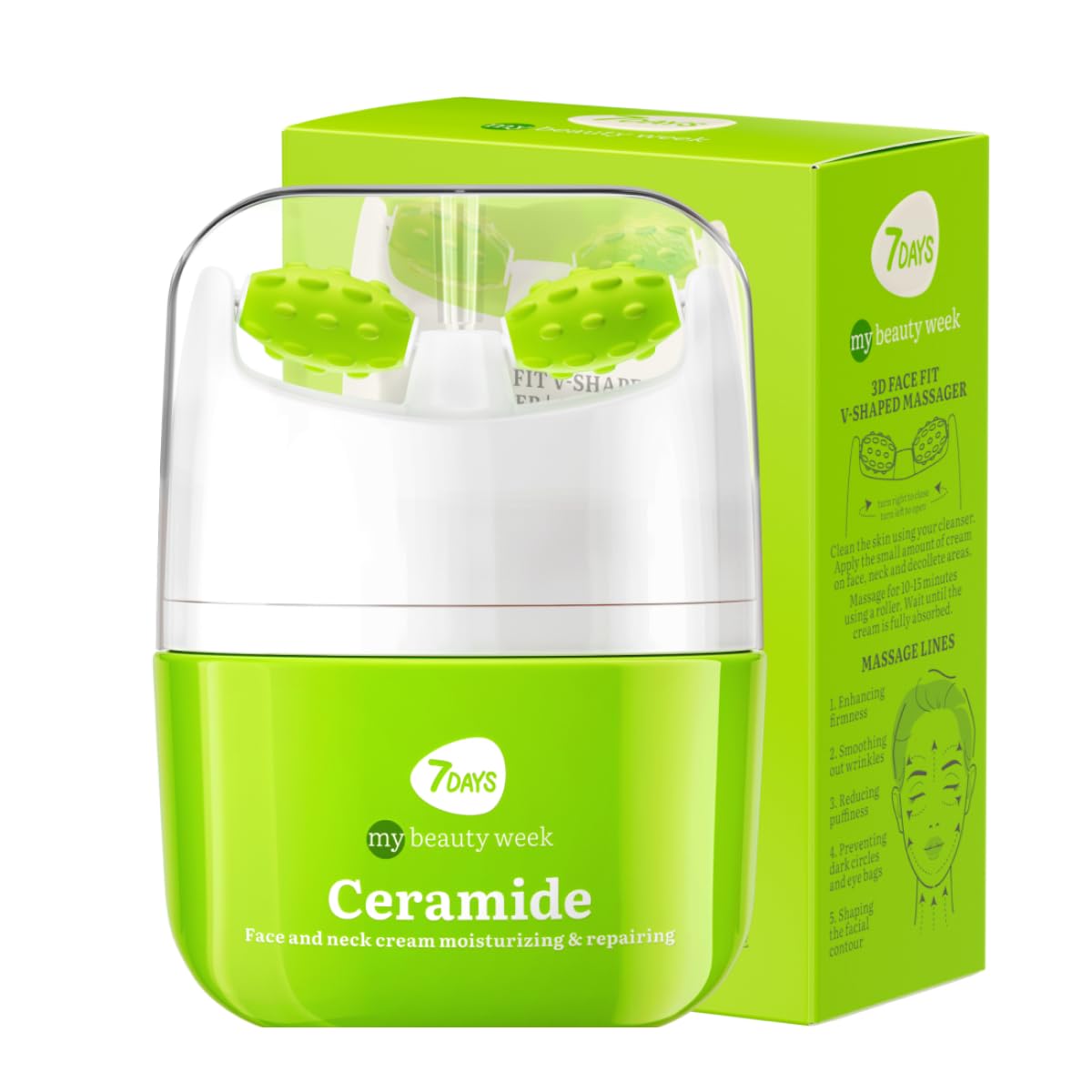 Discover the power of Korean skincare: 7Days combines Korean innovation and beauty products in a complete face cream for men and women. Includes a 3D facial massage roller for a perfectly relaxing application. Regenerates and refines: thanks to a blend of natural active ingredients and an oil complex, this next-generation skincare cream is also a hyaluronic acid face cream and an anti-wrinkle cream for women, perfect for dry or mature skin. Perfect for men and women: also formulated as a face cream for men, it offers a light texture and rapid absorption. A moisturizing and nourishing face cream inspired by Korean skincare, combining effectiveness and comfort. Nutrient-rich formula: ceramides protect the skin from moisture loss, initiate the natural cell renewal process, and even out skin texture. The complex of oils, hyaluronic acid, and vitamin E deeply nourish, providing antioxidant action and an immediate lifting and anti-aging effect for supple, radiant, and youthful skin. Daily hydration and radiance: 7DAYS face cream with ceramides is an anti-wrinkle face cream inspired by Korean skin. It nourishes and smooths the skin, making it firmer and more toned. Ideal for regenerating all skin types.