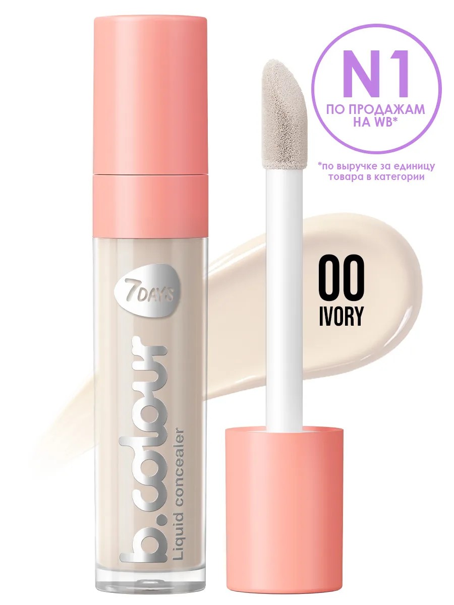 | Полное наименование товара | консилер для лица и глаз, корректор, скульптор, контуринг, маскировка несовершенств, выравнивание тона, стойкий, плотный, легкий финиш, гибкий аппликатор, 3в1, для всех типов кожи, для любого возраста 12+, оттенок 00 Ivory очень светлый, профессиональная декоративная косметика 7DAYS B.COLOUR |