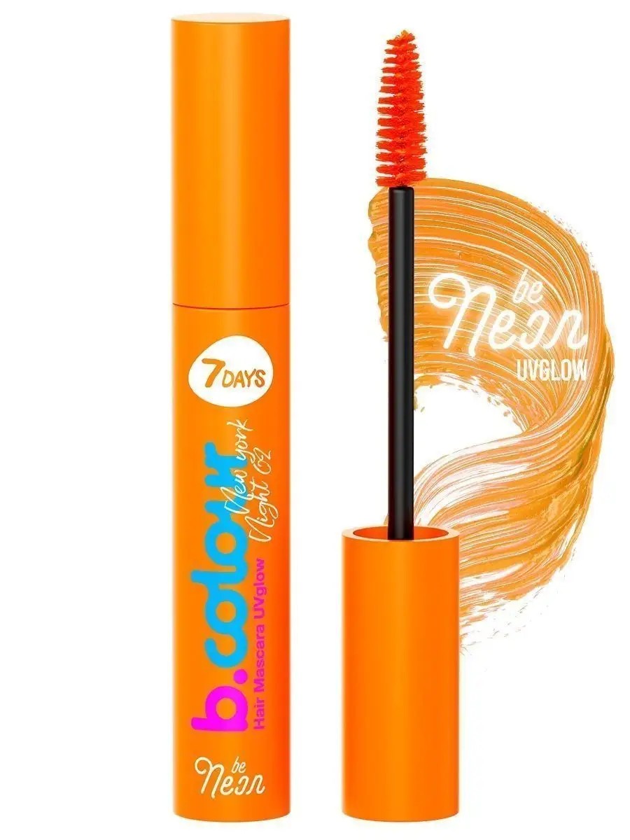 Тушь для ресниц и волос цветная 7DAYS B.COLOUR оранжевая. 4 ярких оттенка (розовый, оранжевый, желтый, зеленый). Тушь цветная для ресниц отлично перекрывает собственный цвет ресниц, полностью обволакивая их своей неоновой и яркой текстурой.
