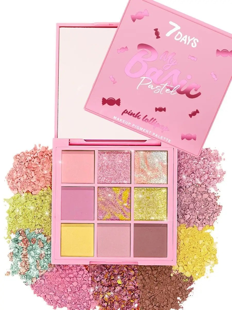 The 7DAYS Eyeshadow Palette features 9 pastel and elegant shades for creating stunning eye makeup. This palette features highly pigmented shadows with matte and shimmer finishes, the shades blend beautifully and complement each other. 7 Days eyeshadows don't flake and guarantee rich, full coverage from the first coat. The collection includes 3 eyeshadow palettes in pastel shades: lilac, mint, and pink. The MY BASIC palette offers shadows for every occasion: matte, shimmer accents, shimmer, and nude.