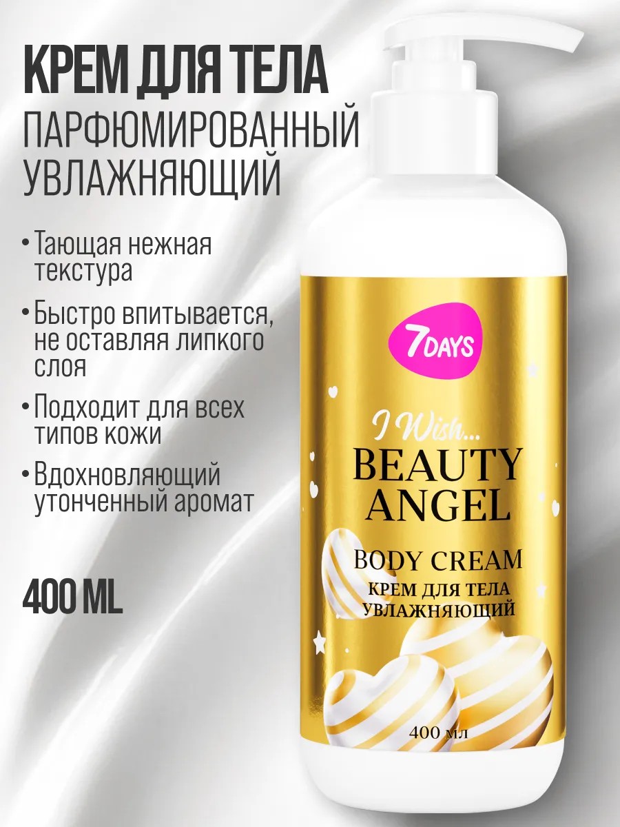 Крем для тела 7DAYS BEAUTY ANGEL, 400мл - глубокое увлажнение, питание и восстановление. Увлажняющий крем для тела подарит твоей коже настоящую заботу и комфорт. Крем для тела женский - профессиональный уход за кожей тела, рук и ног.