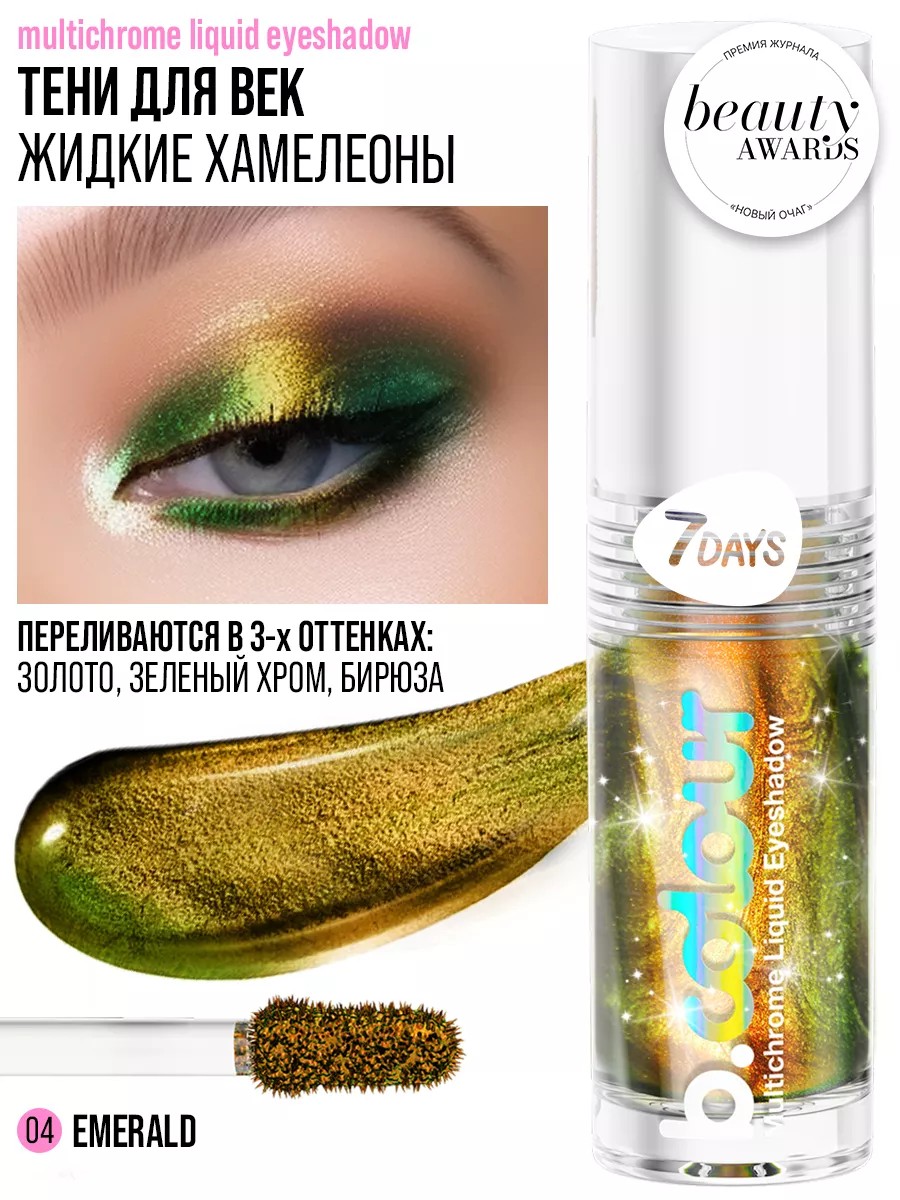 Тени для век жидкие 7DAYS B.COLOUR 04 EMERALD- сияние для профессионального макияжа. Жидкие тени для век разработаны визажистом и содержат блестки для глаз.