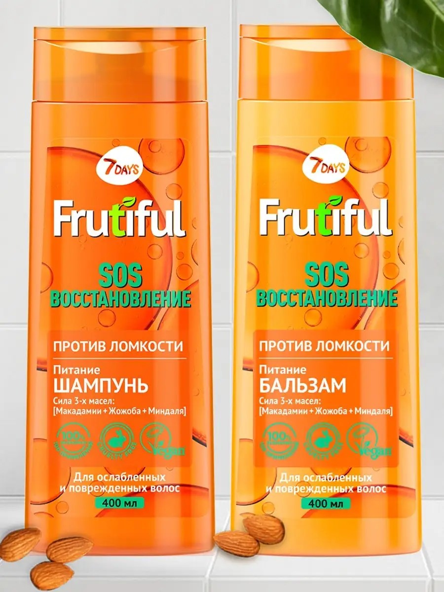 Шампунь для волос и бальзам для волос 7DAYS FRUTIFUL SOS восстановление. Шампунь + бальзам для волос восстанавливающий по 400 мл. Набор на 100% восстанавливает и увлажняет даже самые поврежденные, сухие, тонкие и обезвоженные волосы. Забудь о секущихся кончиках и ломкости волос. РЕЗУЛЬТАТ регулярного применения - волосы становятся сильными, гладкими, меньше ломаются и секутся. До 96 % сокращения ломкости и сечения. Идеальная длинна максимально быстро.