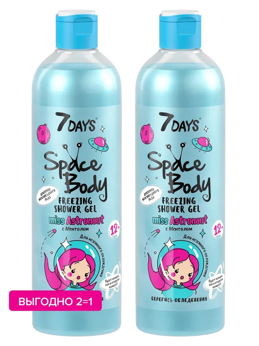 Гель для душа 7DAYS Space Body 2 шт 800 ML — набор для ухода за кожей с маслом Персика и экстрактом Мяты. Парфюмированный гель для душа женский с ароматом Ментола - это идеальное средство для увлажнения, бережного очищения и тщательной заботы о твоей коже.