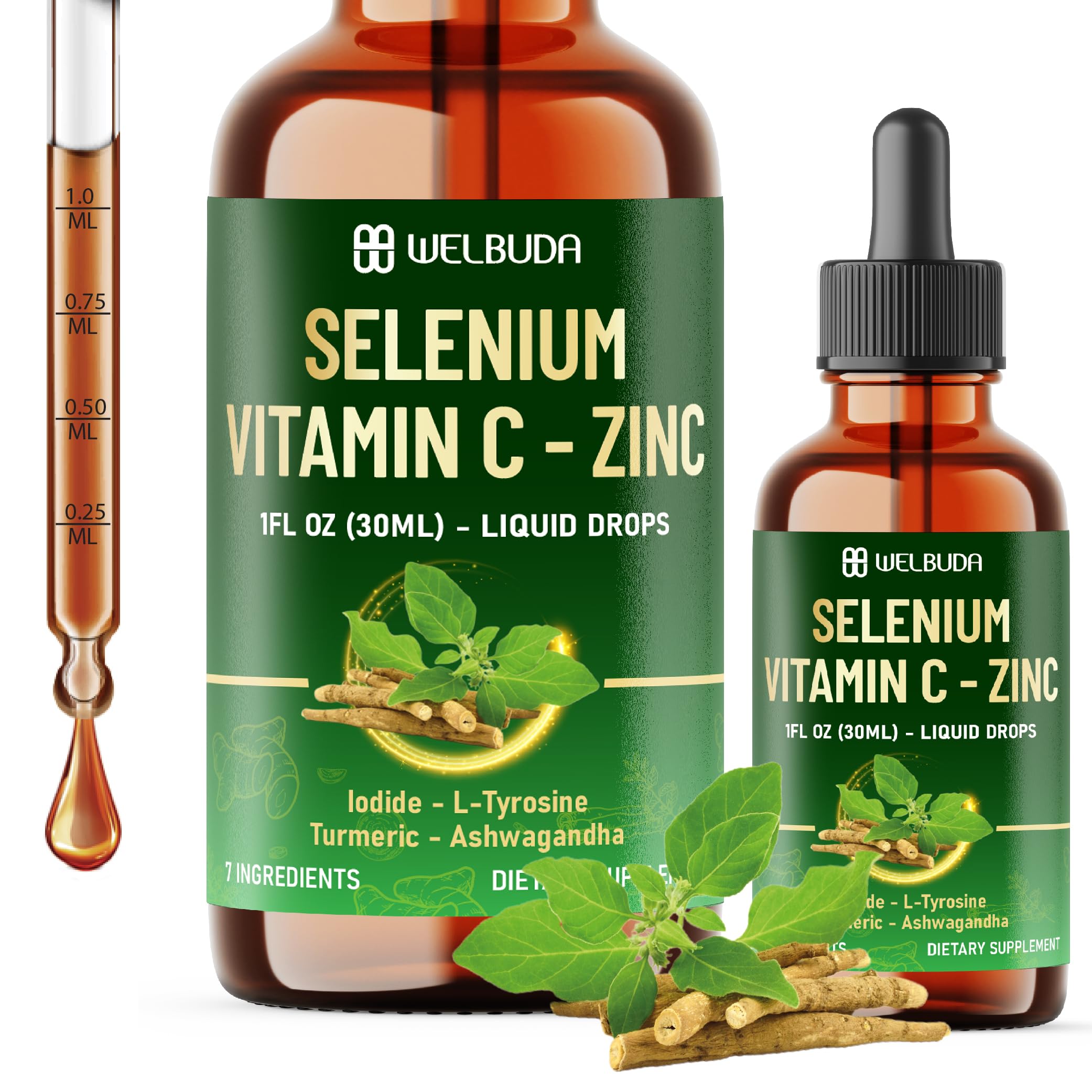 7in1 Selenium Liquid Drops with Selenium Vitamin C Zinc Iodine L-Tyrosine Ashwagandha and Turmeric for Immune & Energy Support - 1 FL Oz - 60 Day Supply
