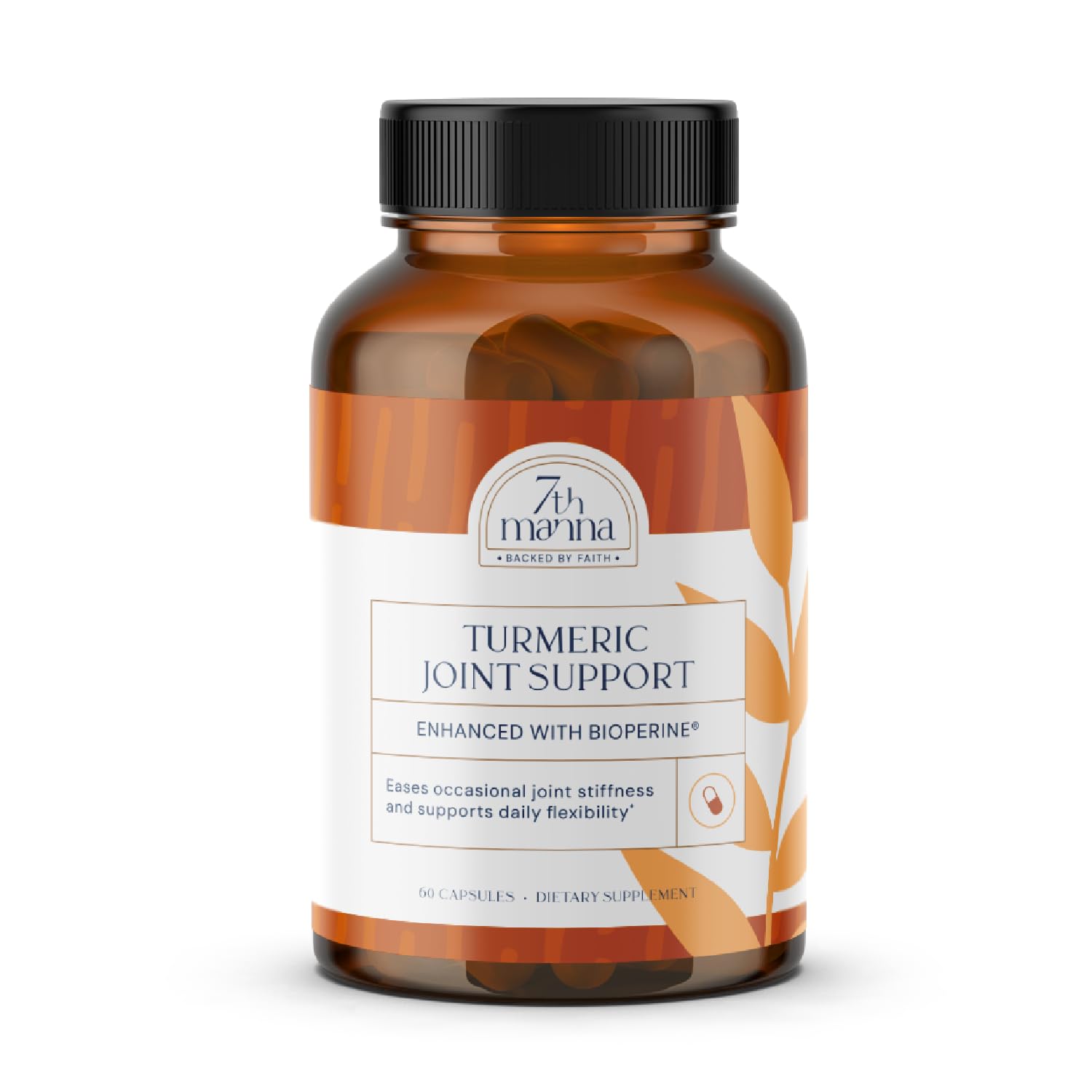 Maintain mobility and joint health with 7th Manna Turmeric Joint Support, a premium turmeric supplement designed to promote flexibility, comfort, and overall wellness. Infused with turmeric curcumin with black pepper extract, this powerful blend of curcumina, ginger supplements organic, and MSM helps support joint function, movement, and a balanced response. Whether you want to stay active, ease occasional discomfort, or maintain long-term joint health, this curcumin turmeric supplement is an essential part of your routine. Formulated to naturally support joint comfort and flexibility, this supplement combines cucumin supplements with BioPerine black pepper extract to enhance absorption. Frankincense, turmeric complex with black pepper extract, and quercetin help maintain cartilage integrity and ease stiffness from physical activity or aging. This herbal supplement is ideal for those seeking a natural supplement to complement their wellness routine. Each serving includes a carefully selected blend of organic turmeric capsules, turmeric ginger black pepper supplement, and circumin turmeric, powerful ingredients that help protect joints from oxidative stress, support flexibility, and maintain an active lifestyle. This makes it an excellent choice for individuals looking for the best turmeric supplement and turmeric pepper supplement for overall joint wellness. Take two turmeric tablets daily with a meal or as directed by a healthcare professional. These curcuma con pimienta negra capsules are easy to incorporate into your routine, whether in the morning or post-exercise. Ideal for individuals seeking tumeric pills, or turmeric supplements capsules to maintain mobility and flexibility. 7th Manna Turmeric Joint Support is made in a cGMP-certified facility, non-GMO, gluten-free, and free from artificial additives. This trusted formula provides complete joint and mobility support.Quality You Can Trust: Crafted in a cGMP-certified facility, our tumeric and ginger supplement is non-GMO, gluten-free, and free of artificial additives—providing a clean, effective joint support supplement. Convenient for Any Routine: These turmeric and ginger supplement capsules fit easily into your daily schedule—perfect for relief or post-workout recovery to maintain flexibility, mobility, and joint strength. Better Absorption for Maximum Effectiveness: With BioPerine for superior curcumin absorption, this turmeric black pepper supplement delivers maximum bioavailability—making it more effective than standard curcuma capsules. Complete Formula for Joint Health: Combines turmeric curcumin with black pepper, ginger supplements, and MSM to support cartilage, flexibility response—ideal turmeric joint supplement for daily use. Enhanced Joint Support for Mobility Strength: This turmeric supplement helps maintain joint flexibility, ease of movement, and structural integrity—ideal joint support for men women aiming for long-term mobility.