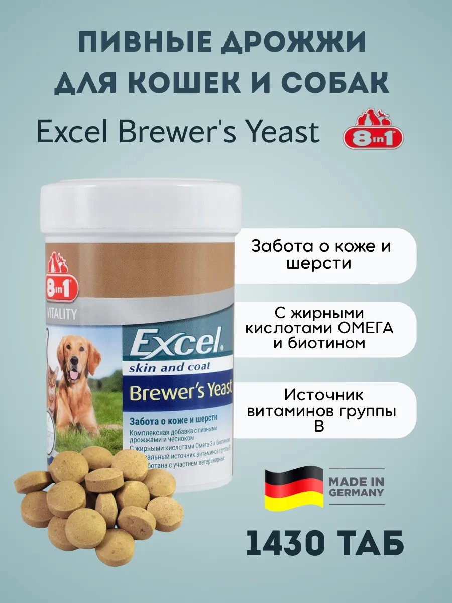 Excel Brewers Yeast — натуральная забота о коже, шерсти и иммунитете питомца.