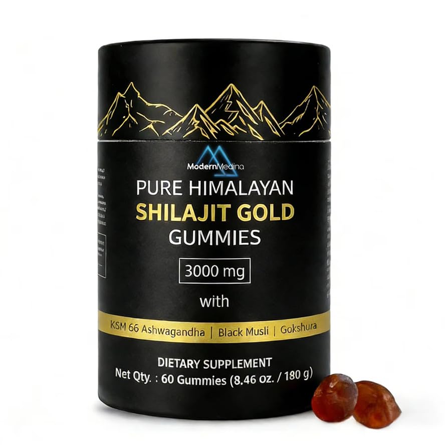 Daily Wellness Boost: Supports stress management, immune health, cognitive function, and physical performance as part of your daily routine. Premium Quality Ingredients: Sourced from the pristine Himalayan mountains and carefully formulated to ensure purity, potency, and safety. Convenient Delicious: Easy-to-take gummies with a great taste - no need for messy powders or hard-to-swallow capsules. Energy Vitality Support: Help naturally boost stamina, endurance, and overall vitality with powerful adaptogens and ancient Ayurvedic herbs. High-Potency Formula: Each serving provides 3000mg of Himalayan Shilajit enhanced with Ashwagandha, Black Musli, and Gokshura for maximum effectiveness.