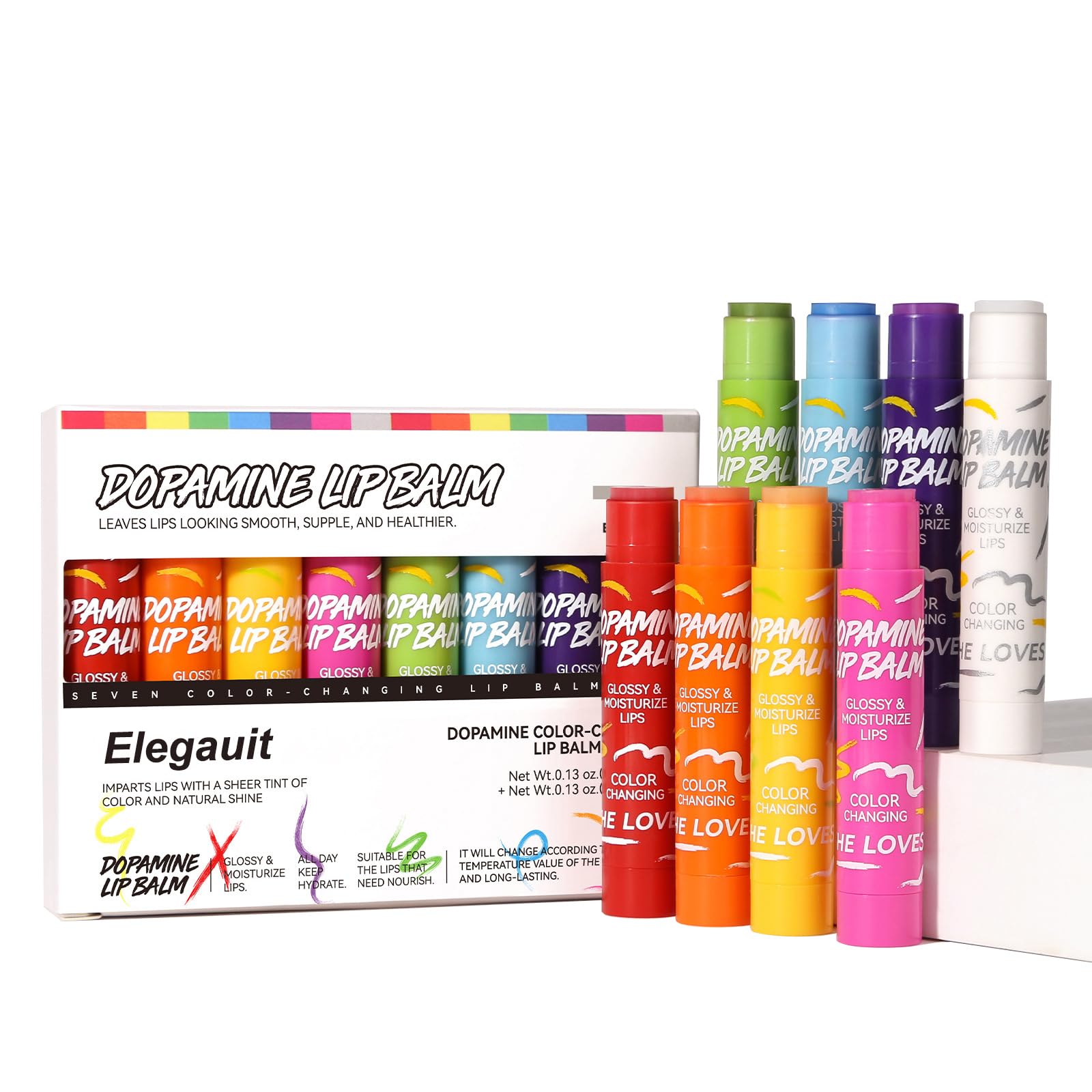 Product Specification This lip balm is rich in natural moisturizing essence, provides all-day moisture and is sure to leave your lips feeling buttery smooth, hydrated, and reduce dryness, cracking, and peeling. To use, you just need one swipe. This swipe deeply nourishes your lips with layers of clarity and provides long-lasting moisture. Our lip balm is rich in a variety of natural materials give your lips better care. Natural beeswax: Natural beeswax can keep your lips moisturized and lustrous. Natural palm oil: Palm oil can wet dry lips and reduce inflammation. Natural mineral oil: Natural mineral oil can moisturize pink lips and improve darker lips. This lip balm is very light-weight, so it's small enough to fit in your pocket and take with you anywhere. You can take it out of your pocket and use it when you need it. Feartures Weight(approx.): 5 g Size(approx.): 14mm 80mm Package include: 8 x lip balms Store: Store in a cool, dry, and clean place. Cautions: 1.Use only for external application. 2.Keep away from the reach of children. 3.Immediately discontinue use if irritation occurs.